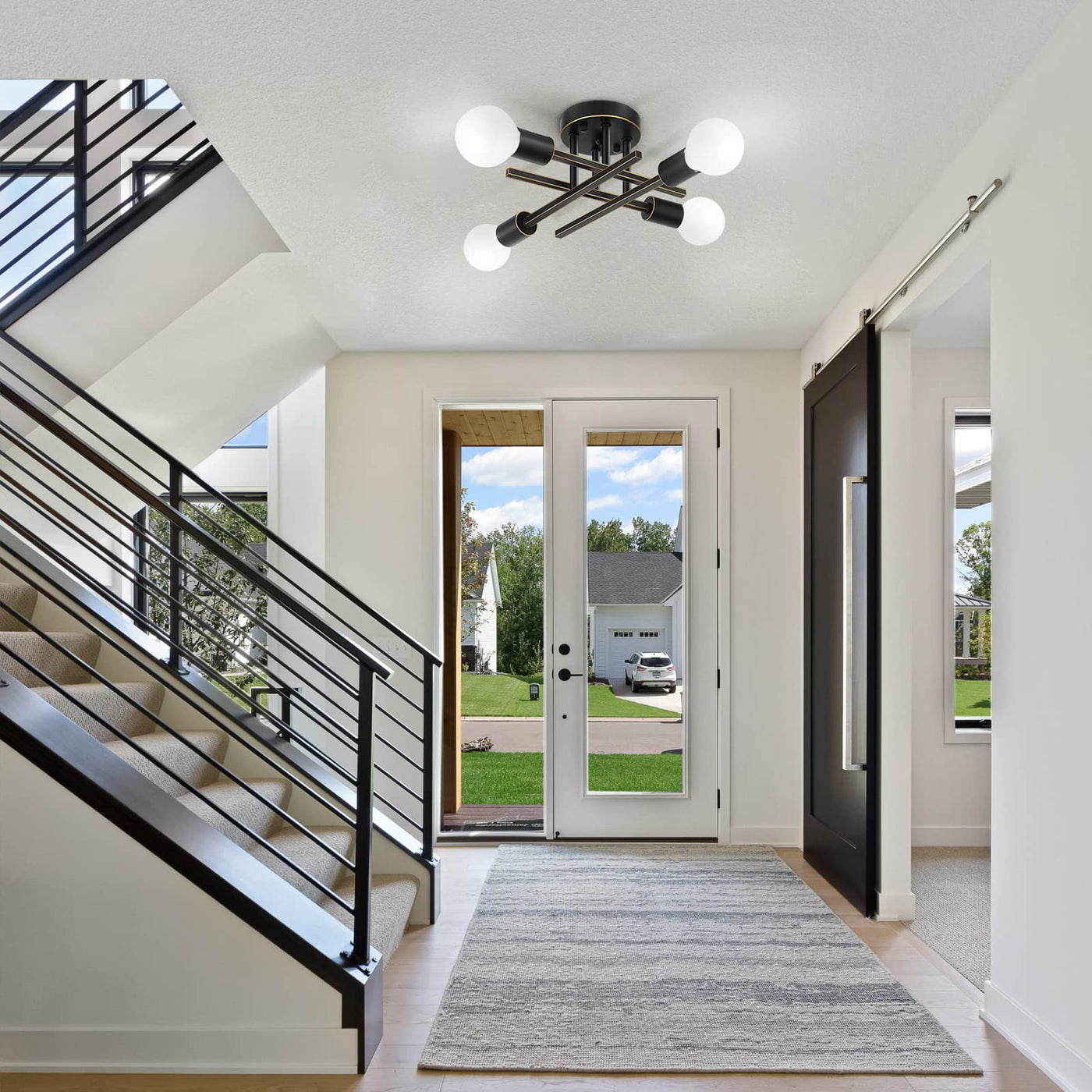 Q: What are the ideal applications for this ceiling light fixture?A: The SunRider Industrial 4-Light Semi Flush Mount is versatile and suitable for various settings, including bedrooms, dining rooms, living rooms, hallways, bathrooms, and commercial areas like bars and cafes. Its stylish design makes it a great choice for both residential and commercial lighting.