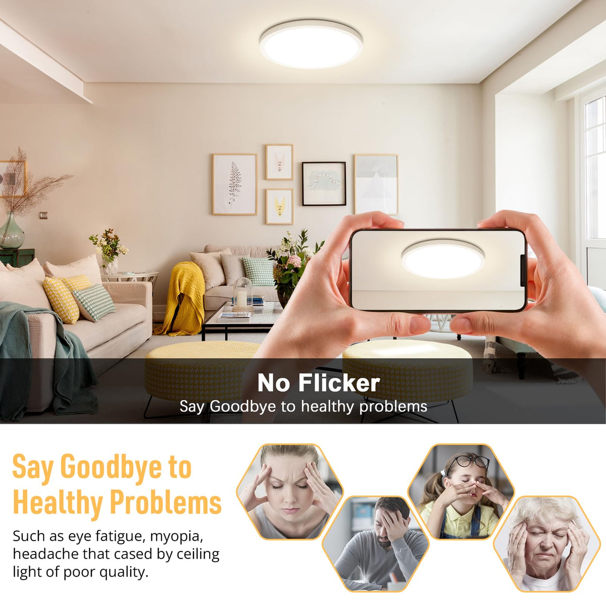 Introductions: 24W Led Flush Mount Ceiling Light Fixture, 12 Inch 2400Lm 4000K Neutral White Modern Close To Ceiling Light, Non-Dimmable Ultra-Thin Flat Round Indoor Lighting Lamp For Living Room Bedroom Kitchen Specifications: Dimmable: No Diameters: 12 Inch Thickness: 0.71 Inch Shape: Round Flat Light Color: 4000K Neutral White Shade Color: White Wattage: 24W Equiv. Wattage: 240W Brightness: 2400Lm(Highest Brightness) Voltage: 100-130V Wattage:24W Frequency: 60Hz Beam Angle: 120? Color Rendering Index: 85+ Lifespan: 50000 Hours+ Waterproof: Ip20 Number Of Led Bead: 126 Leds Style: Classic/Modern Power Source: Corded-Electric Installation Way: Ceiling Mount Features: Long Lifespan, High Brightness, Slim, Ultra Thin, High Cri, Energy Saving, No Flicker, Nontoxic, Not Dimmable, Stable Light, Easy To Clean, Dust Proof, Durable, Resistant To Corrosion Recommended Applications: Bathroom, Kitchen, Basement, Hotel, Powder Room, Restaurant, Bedroom, Study Room, Farmhouse, Living Room, Mudroom, Guest Room, Galley, Dining Room, Kids Room, Nursery, Utility Room, Home Office, Workshop, Shop, Office, Hallway, Entryway, Porch, Balcony, Bar, Cafe, Foyer, Mudroom, Guest Room, Galley, Attic, Basement, Garage, Staircase, Stairwell Installation Steps: 1. Unscrew The Mounting Plate From The Base Of The Ceiling Light. 2. Attach The Mounting Plate To The Junction Box Of The Ceiling By Using The Screws. 3. Connect The Wires Correctly By Using The Wire Connector. 4. Rotate The Ceiling Light To The Mounting Plate. Package Included: 1 X Led Ceiling Light Fixture 1 X Tool Kit 1 X User Manual Notice: Cut Off Power Before Installing Or Cleaning The Light. Do Not Put The Light In Overheating Working Condition Or Cast It Into The Fire. Do Not Retrofit The Product