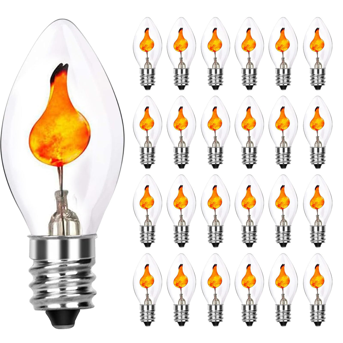 Illuminate your space with the enchanting C7 Clear Flame Light Bulbs by SUNSGNE, perfect for Halloween and Christmas celebrations. These decorative bulbs create a warm, flickering glow that enhances ambiance, making them an ideal choice for indoor and outdoor decorations.