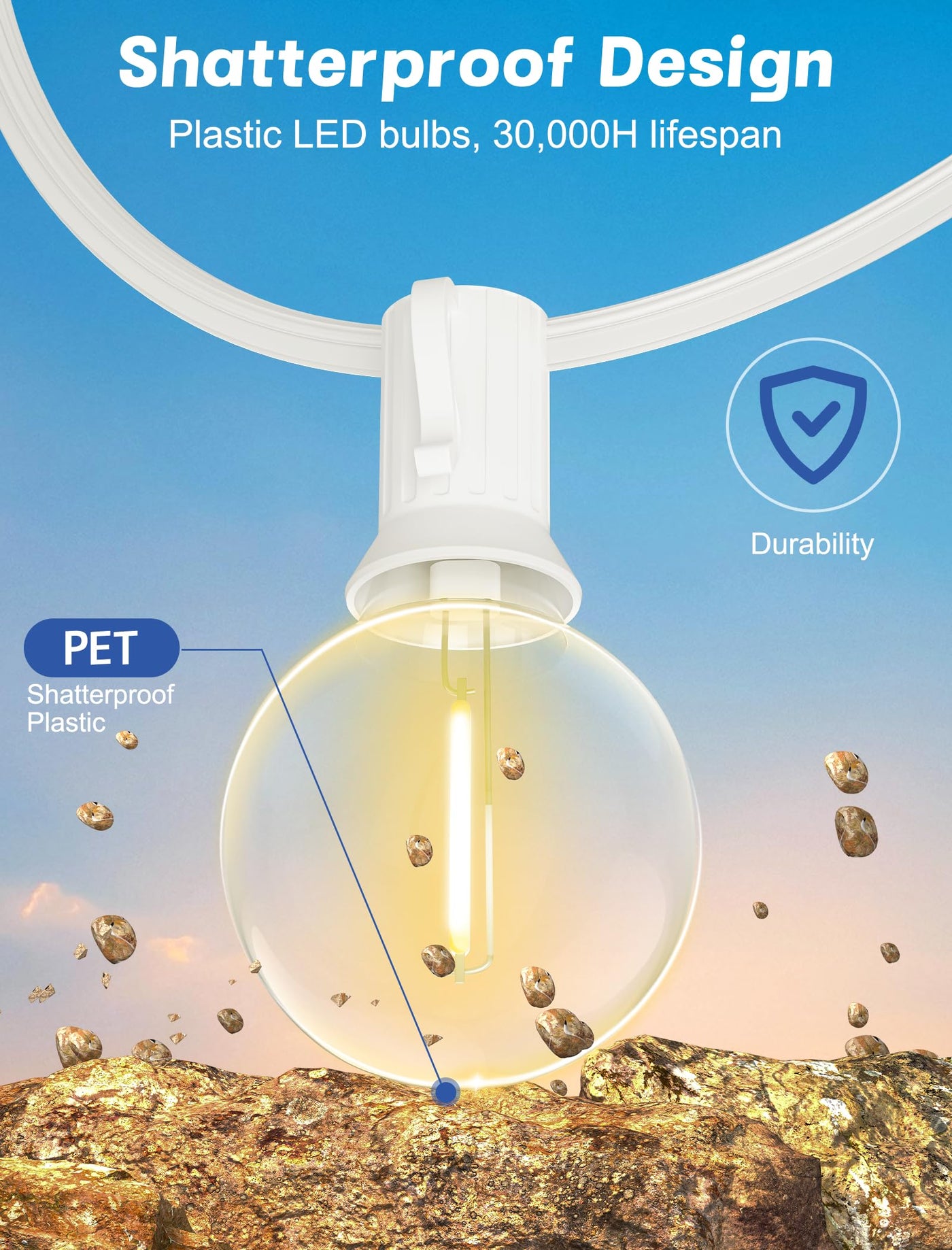 Sunsgne White String Lights Outdoor, 50Ft White Outdoor Lights With 52 G40 Shatterproof Led Bulbs(2 Spare) For Patio Garden Porc