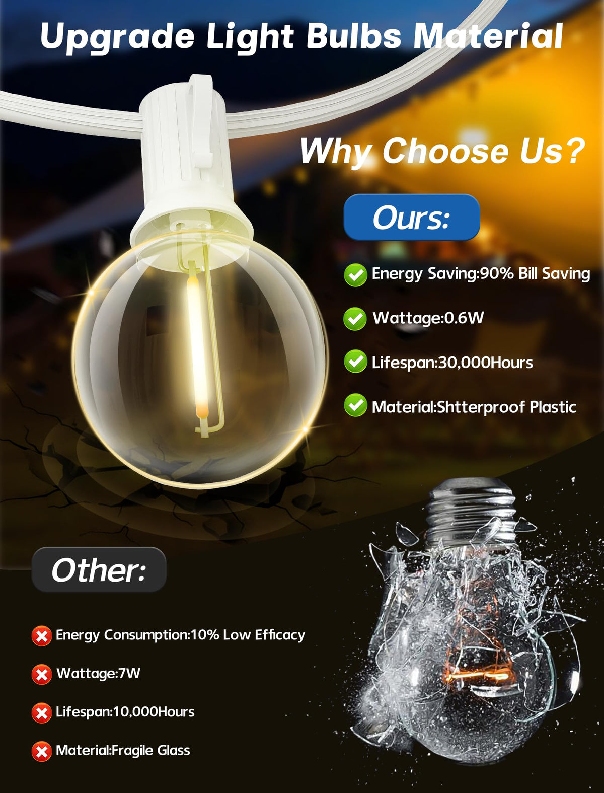 Product Description Easily Transform Your Outdoor Space With The Sunsgne G40 50-Foot Led Outdoor String Lights! Designed For Homeowners, Event Planners, And Catering Businesses, This Versatile White String Light Is Easy To Install And Long-Lasting. Simply Plug The String In, Secure With The Included Clips, And Instantly Add A Warm, Inviting Glow To Your Patio, Garden, Or Wedding Venue. The Ip44 Waterproof Rating Ensures It Works Rain Or Shine, While The Shatterproof Led Bulbs Ensure Safety For Children And Pets. Whether You'Re Hosting A Summer Barbecue Party, Decorating A Cafe Patio, Or Creating A Festive Atmosphere, These Energy-Efficient Lights Are Designed To Fit Any Scene. The G40 String Lights Come In 50-Foot Lengths And Have Dimmable Options, Providing Ultimate Flexibility For Residential And Commercial Use. Upgrade Your Outdoor Decor Today With This Hassle-Free, Durable Lighting Solution From Sunsgne-The Perfect Combination Of Style And Simplicity! White Outdoor Lights White String Lights Outdoor White String Lights White Lights String Outdoor Outdoor White String Lights Outdoor Led String Lights Outdoor Lights White Cord Outdoor String Lights White White Lights String Outdoor String Lights White Cord Outdoor White Lights White Patio Lights White Bistro Lights White Balcony Lights String Lights For Outside Outdoor String Lights G40 String Lights White Porch Lights Globe String Lights Balcony Lights For Apartment Outdoor String Lights Waterproof Round Bulb String Lights