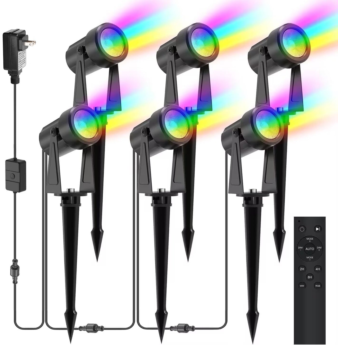 Sunthin Outdoor Landscape Lighting With Remote, Rgbw Color Changing Spot Uplights, 6 Pack