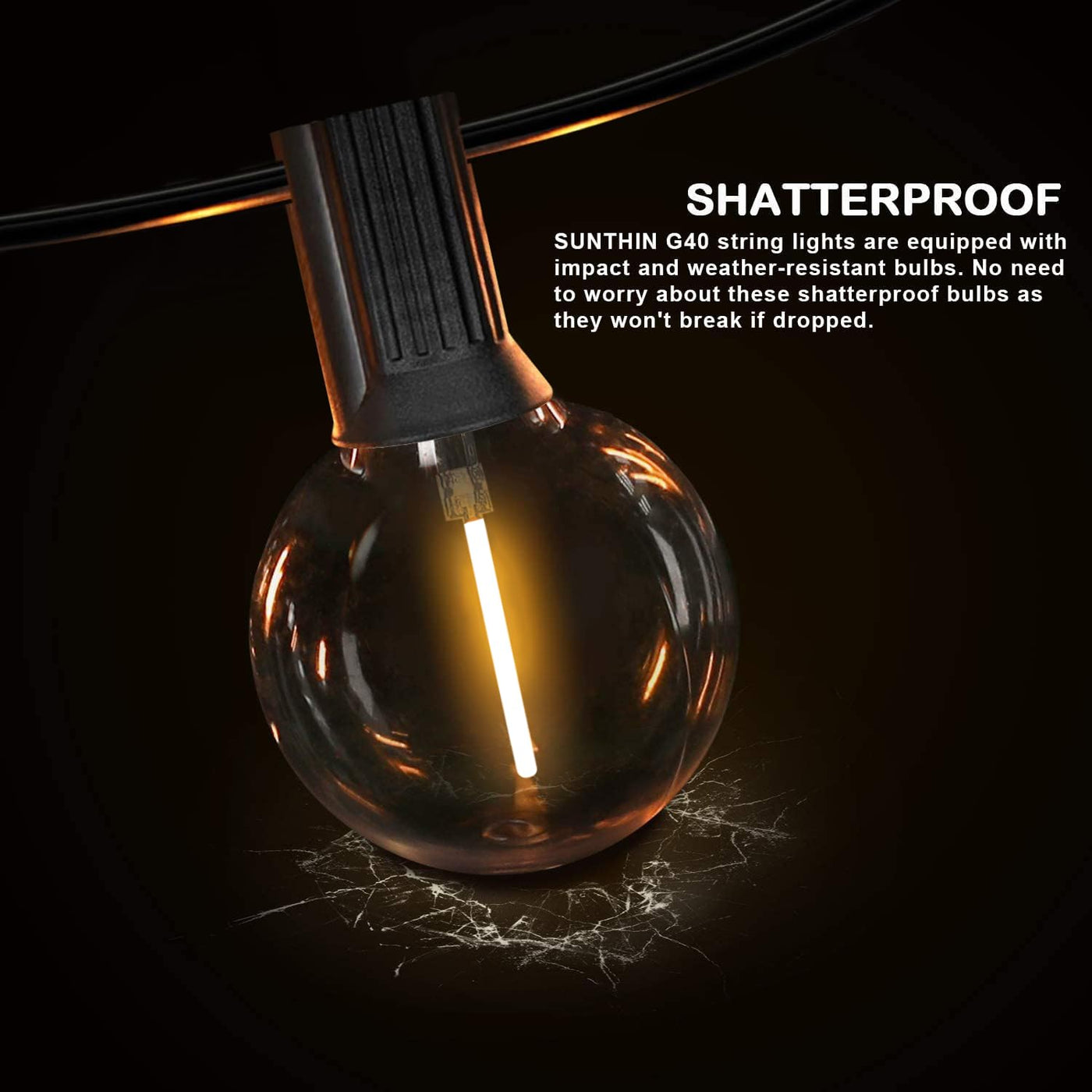 Sunthin Outdoor String Lights, 192Ft(4X48Ft) Patio Lights With G40 Shatterproof Led Bulbs, Hanging Lights String For Outside Bac