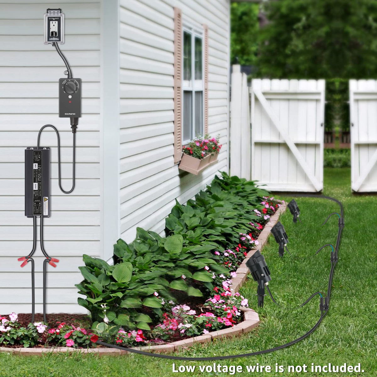 SUNVIE Low Voltage Landscape Lights Kit with Transformer and Timer 12W 12-24V Outdoor LED 3000K Waterproof Landscape Lighting wi