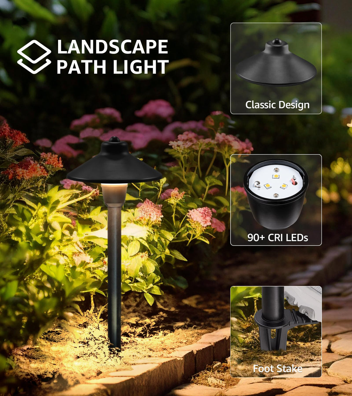 Q: What voltage do these landscape lights operate on, and are they safe to use?A: The SUNVIE pathway lights operate on a low voltage of 12-24V, significantly reducing the risk of electric shock, making them a safe option for outdoor lighting.