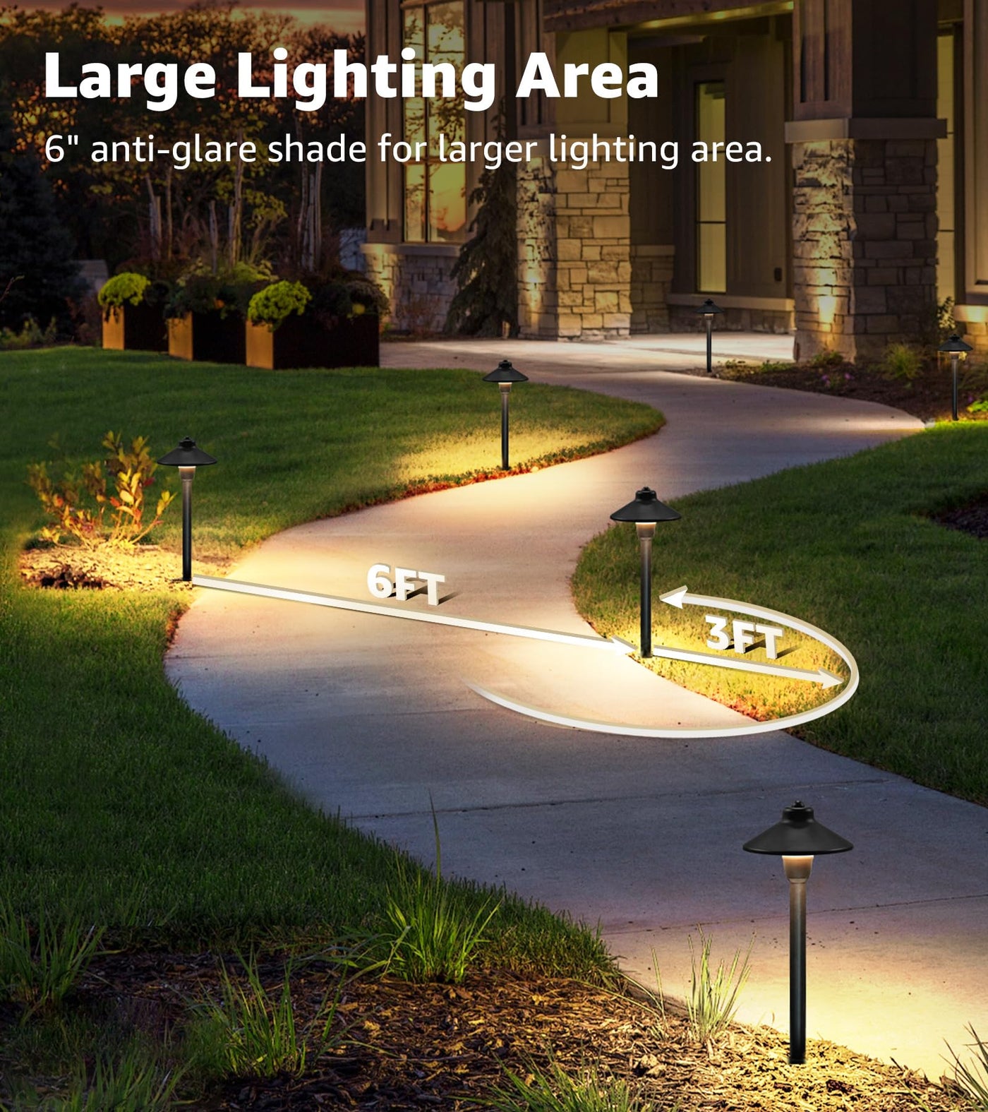 Q: How does the anti-dazzle design work in these pathway lights?A: The anti-dazzle design features a 6-inch 'umbrella-cover' that blocks a portion of the light from directly entering the eyes, reducing glare while ensuring effective illumination for your outdoor spaces.