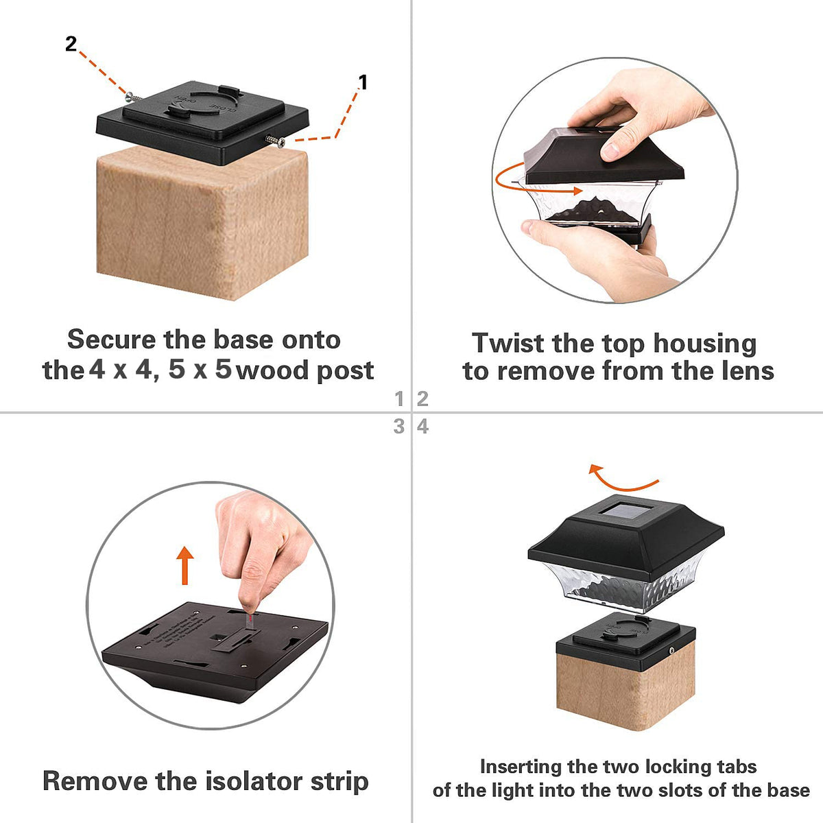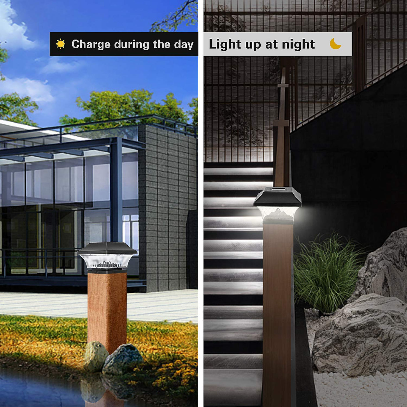 Sunwind Solar Post Cap Lights Outdoor- 4 Pack Led Fence Post Lights For 4X4 5X5 Wooden Posts Warm White Waterproof For Deck, Pat