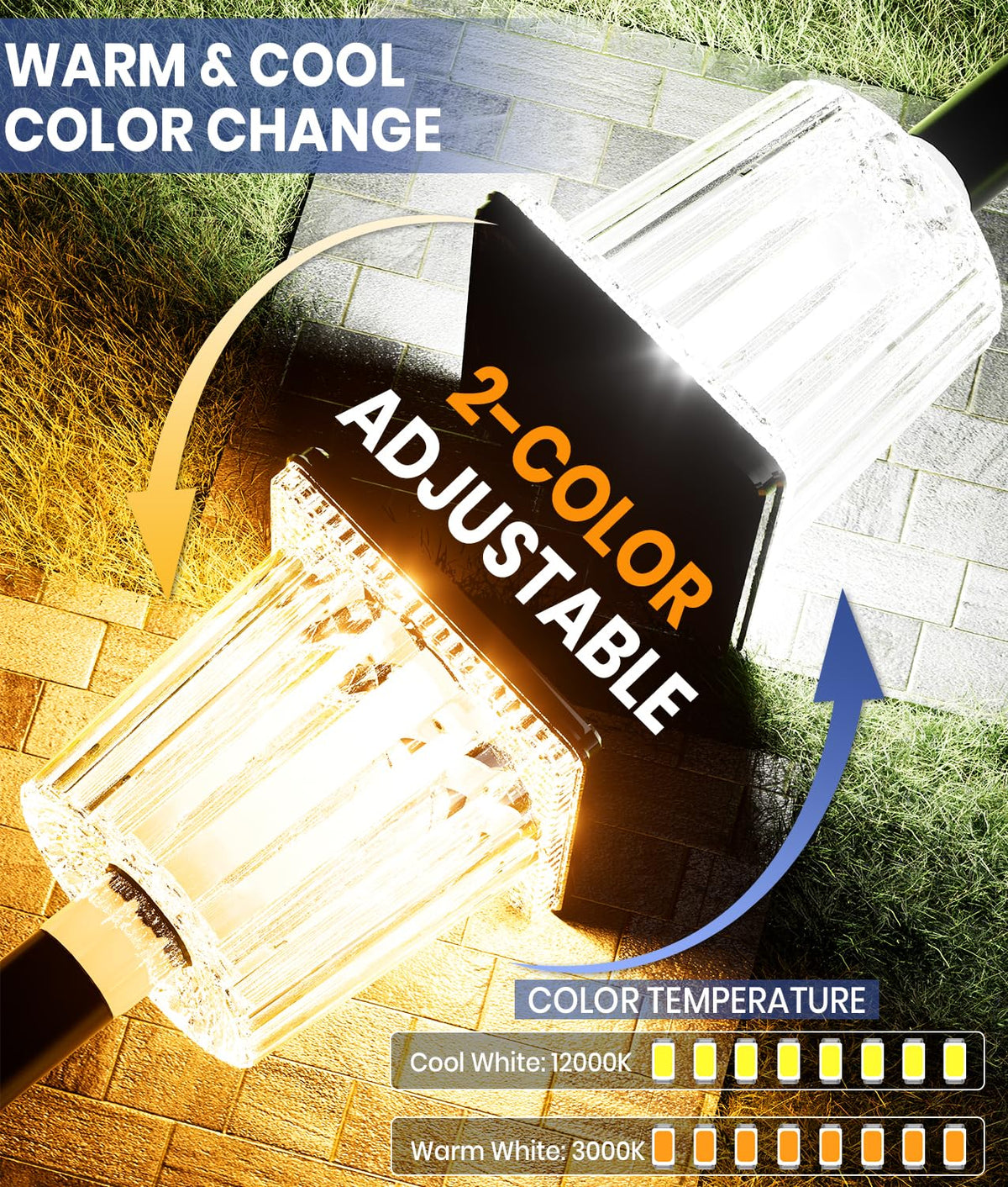 Super Bright Solar Pathway Lights Outdoor Powered 8 Pack,Adjustable Warm&Cool White,Waterproof Ip65 Solar Garden Decor Lights La