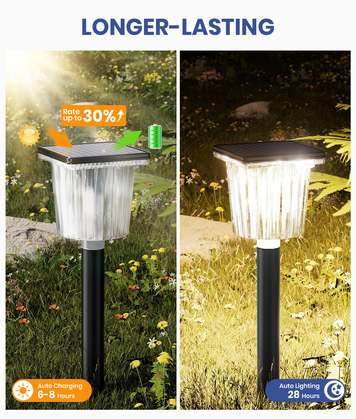 ALFIOT Solar-Powered Outdoor Lights Transform your yard decorations outdoor with our premium 8-pack solar pathway lights?, engineered to deliver superior outdoor lighting while enhancing garden decor for outside. Certified solar outdoor lights waterproof construction withstands harsh weather, making them ideal for patio decor and front porch decor. Core Features ? Dual-Mode Solar Landscape Lights Switch instantly between 3000K (cozy yard decor accent) and 6000K (driveway security lighting) via tactile button. Perfect for outdoor lights for house perimeter protection or creating garden decor moods. ? Advanced Solar Efficiency Upgraded solar powered outdoor lights with monocrystalline panels charge 30% faster, delivering 12+ hour operation - ideal for outdoor lights for patio or poolside landscape lighting. ? High-Grade Durability IP65 waterproof solar yard lights outdoor withstand -4F~140F extremes. Reinforced stakes secure in lawn/gravel/soil for perfect yard lights outdoor solar powered stability. Multi-Scene Applications ? Residential ? Commercial ? | Solar garden lights for flower beds | Patio decor lighting | | Pathway lights solar powered walkways | Solar landscape lights | | Outdoor solar lights for yard security | Outside lights for house areas | Pro Installation Tips: Position solar lights in maximum sun exposure zones Activate preferred mode for front porch decor or backyard safety Works with all outdoor decor styles from rustic to modern Complete Package Includes 8 Solar Outdoor Lights Waterproof Units 8 Ground Spikes&Stakes 1 Multi-language Manual Trusted Performance ?? 1-year warranty covering solar lights outdoor waterproof components