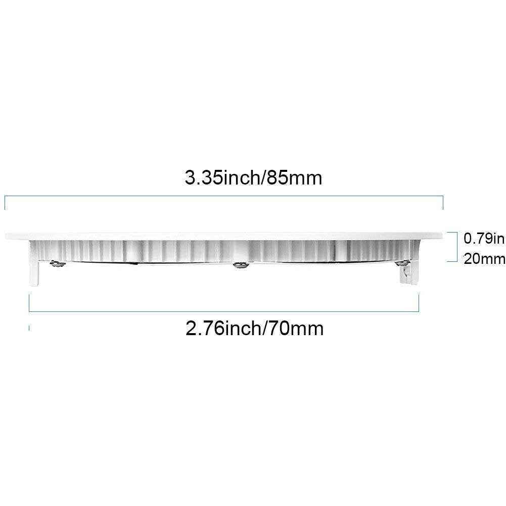 Superdream Recessed Commercial Lighting, Sophisticated And Stylish, Our Indoor Recessed Lamp Is The Perfect Eye Candy For Any Contemporary Application. The Led Ceiling Light Designed With 6000K Color Temperature And Wide Beam Which Provides Soft Ambient Light. The Recessed Downlight Is Perfect For General Indoor Lighting In Office, Study, Living Room, Kitchen, Dining Room, Display Case, Under Cabinet, Etc. With 700 Lumen Brightness, It Outperforms Most Similar 4 Inch Recessed Lights In Current Market. Save Electricity Bill --- This Elegant Ceiling Light Fixture Replace 70W Halogen Bulb By 6W Led. Save Over 85% On Electricity Bill Of Lighting. Compact Dimensions --- No Big Fixture House Required. Outer Diameter Is 4.72In. Thick Is 0.79In. Easy Installation --- Can Be Easily Fitted Instead Of Ordinary 4 Inch Recessed Light Fixture. No Additional Accessories Are Required. Lower Maintenance Costs --- Extremely Long Life Reduces Re-Lamp Frequency. Save Your Effort To Replace Bulbs In High Ceiling. Specification: Item Type: Recessed Led Ceiling Light Beam Angle: 120 Body Material: Aluminum And Lgp Certification: Ccc,Ce,Fcc,Rohs Light Source: Led Bulbs Rated Hours: Above 20,000Hs Voltage: Ac 85~265V Operation Temperature: -40~55 C Note: Recommend Hole Size Shoule Be Between External Diameter And Inside Diameter. Package Include: 2 X 3W Led Recessed Light