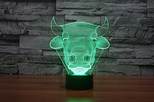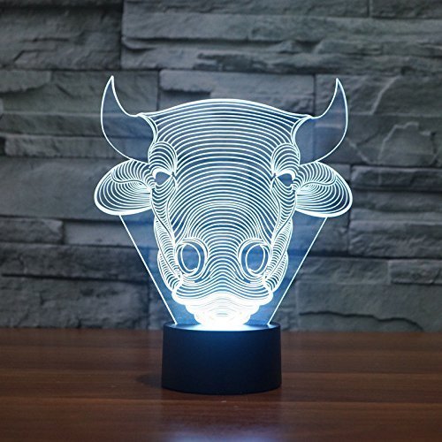 Superniudb 3D Bull Cow Night Light - Optical Illusion Lamp With 7 Color Changing Lights