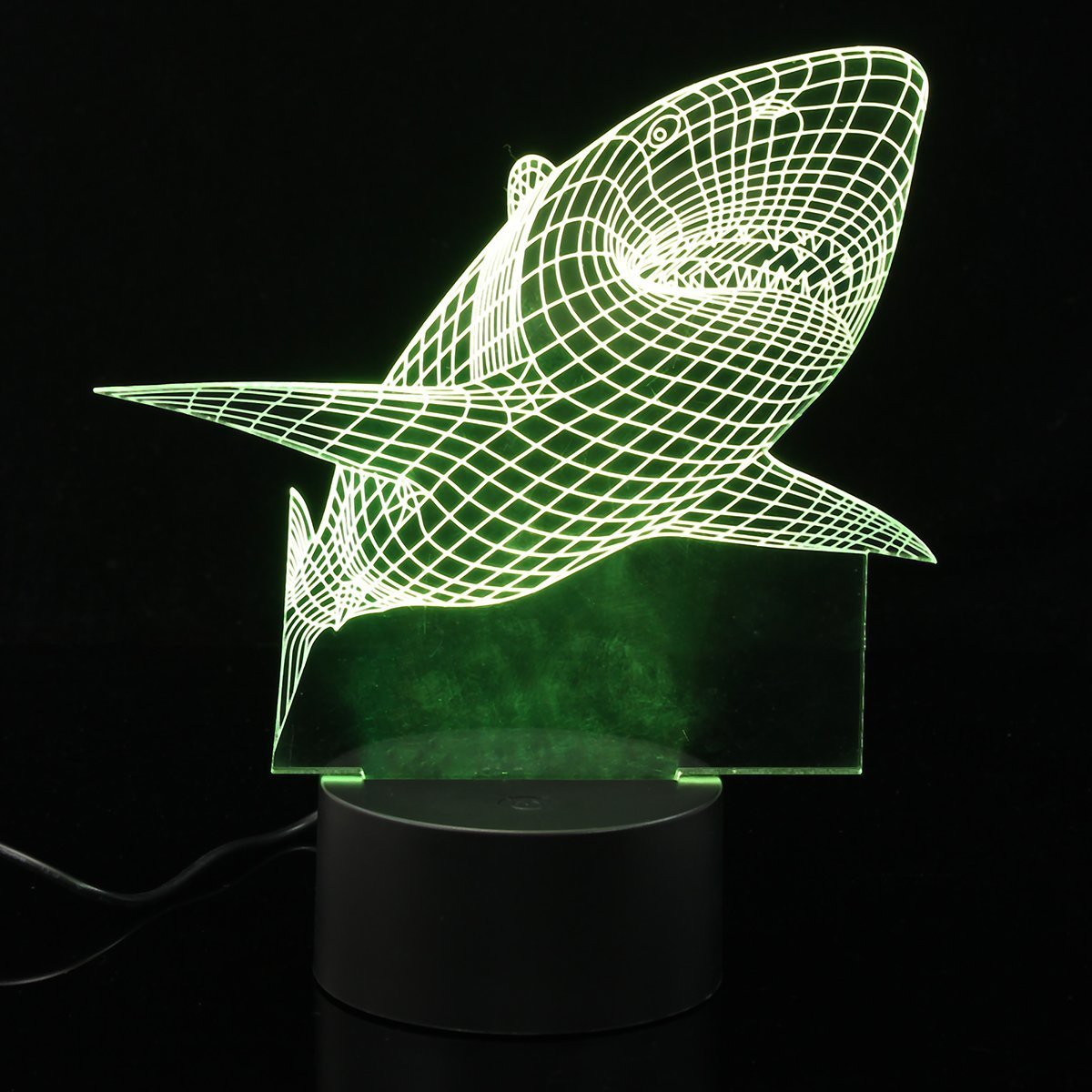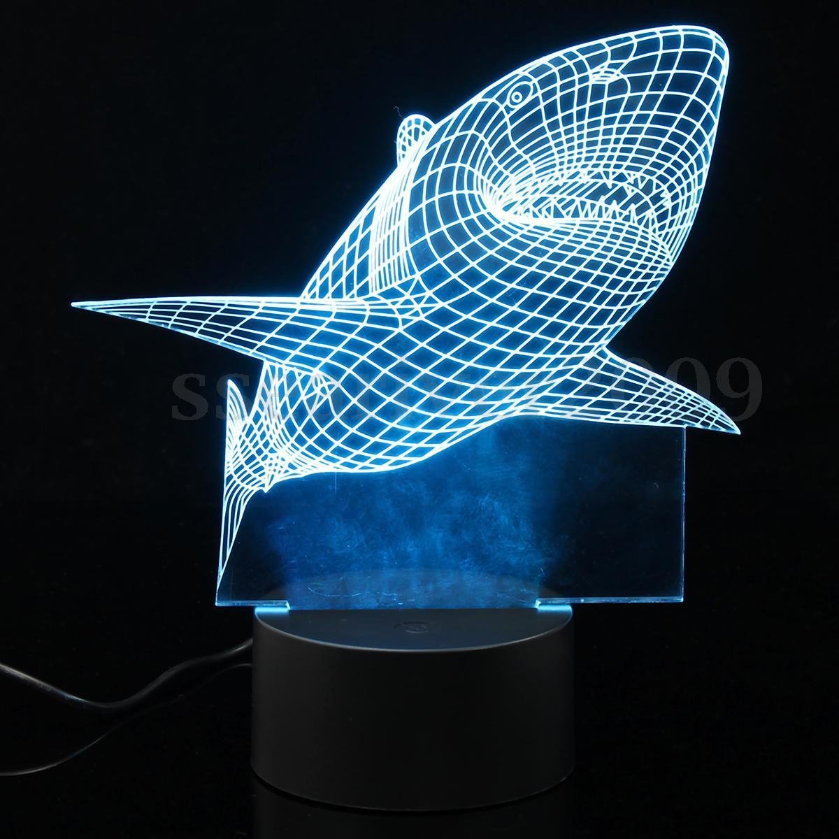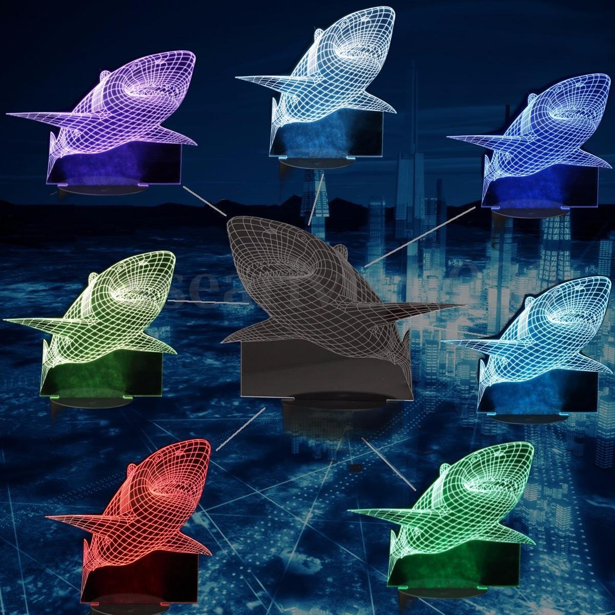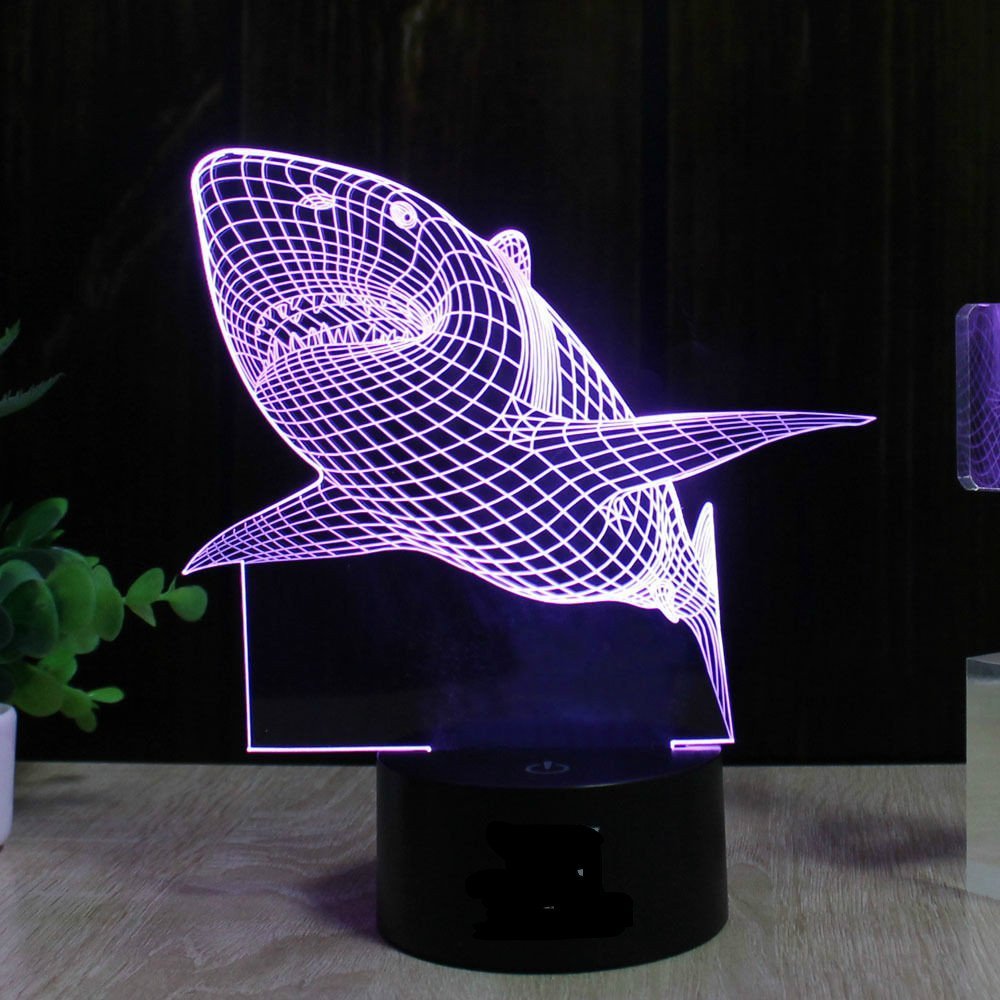 Superniudb Jaws Great White Shark 3D Illusion Led Night Light 7 Colourful Table Desk Lamp