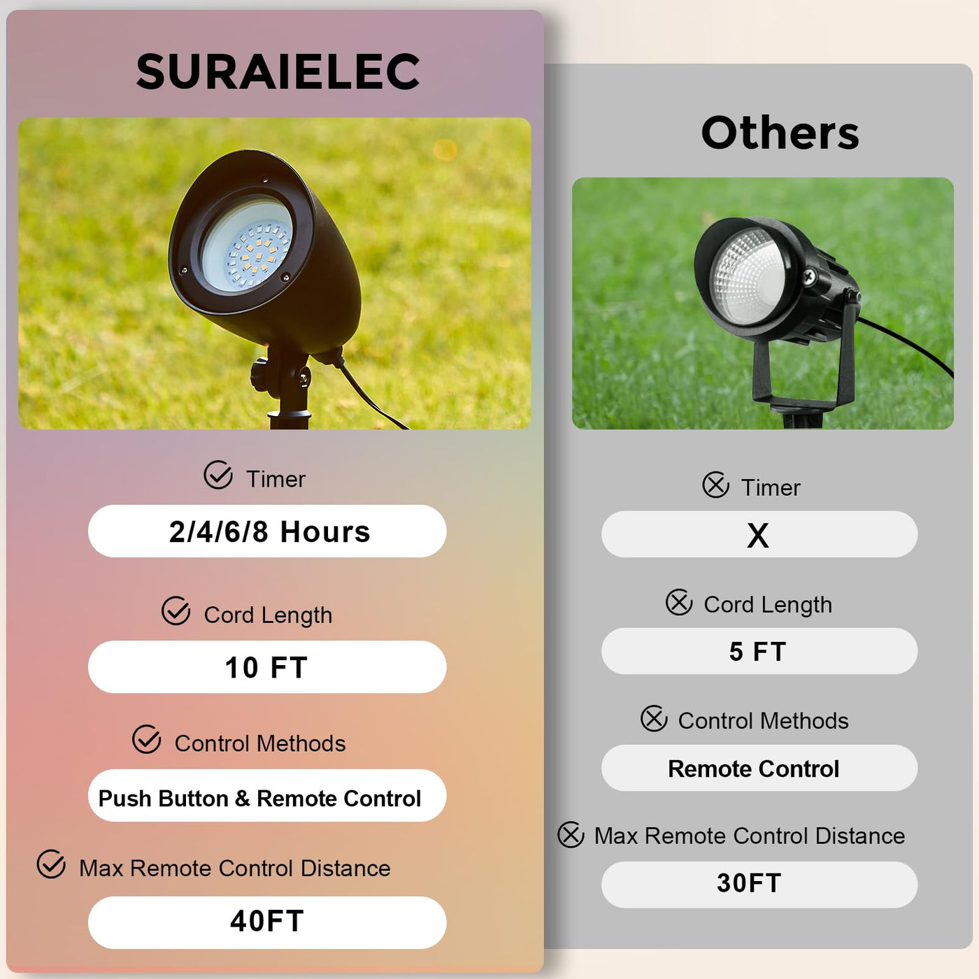 Suraielec Led Spotlights Outdoor, Remote Control Spot Light With Timer, Plug In Yard Spotlight For Trees, Garden Holiday Decor,