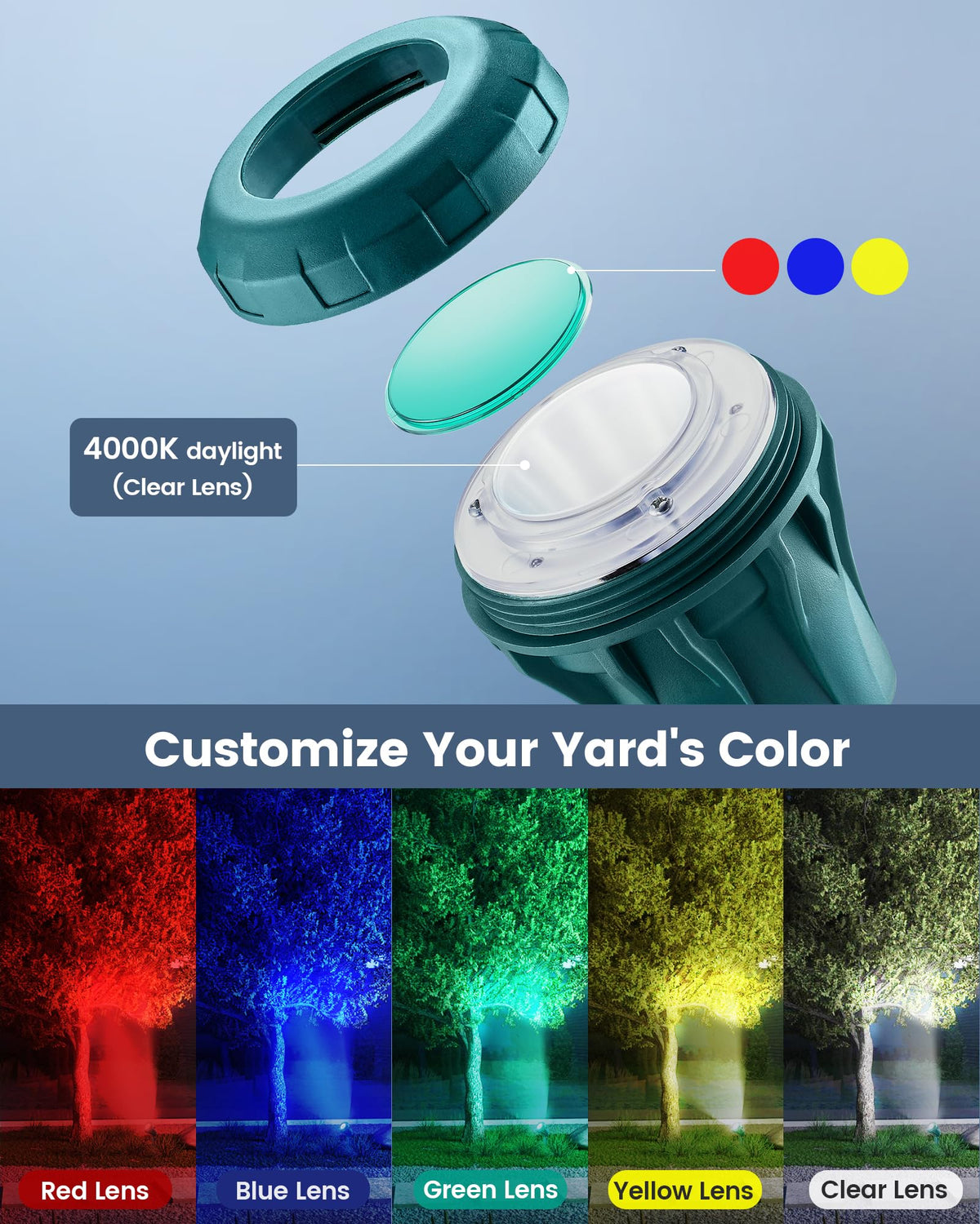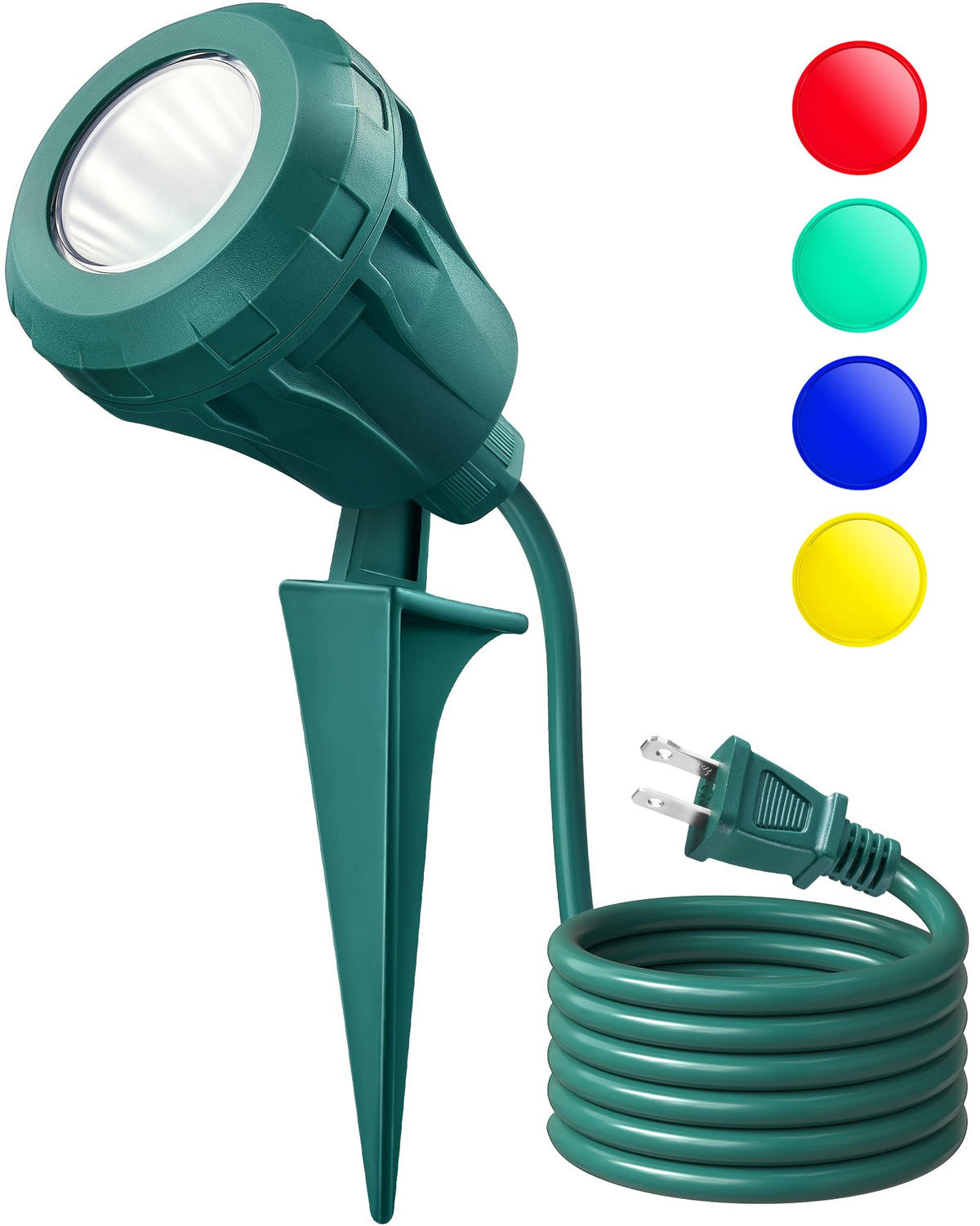 Suraielec Halloween Spotlight Outdoor, 800Lm Waterproof Led Spot Light With 4 Extra Lenses (Red Yellow Green Blue), 120V Lanscape Lighting For Holiday, Trees, 5Ft Extension Cord, Etl Listed Illuminate Your Yard: The 4000K Outdoor Spotlight Offer A Precise 90 Beam Angle And 800 Lumens Of Brightness For A Striking, Vivid Display. Perfect For Highlighting Your Lawn, Landscaping, And Flags With Natural, Vibrant Colors.Heavy Duty Bright Led Stake Light: With A Hardy Case That Protects The Spotlights Outdoor Waterproof From The Elements; You Can Be Assured That You Can Count On It To Work Every Time; The Ground Stake That Keeps It Firm And Stable To The Groundeasy Installation: The Halloween Spotlights For Outside Come With A 5 Ft Sjtw 18/2C Extension Cord For Flexible Placement Without The Need For Extra Extensions. Simply Turn The Case Counterclockwise To Change Lenses And Adjust The 180 Lighting Angle To Suit Your Landscape.Easy To Use: Simply Plug The 120V Landscape Spotlights Into Any Standard Outlet, And They'Re Ready To Illuminate Your Space. The 5Ft Cord Offers Flexibility In Placement, And Assembling The Lights Or Replacing The Lenses Is A Breeze, No Tools Required. Waterproof: With An Ip65 Waterproof Rating, The Spot Lights Outdoor Are Designed To Endure Harsh Weather Conditions. They Are Resistant To Frost, Heat, Rain, Dust, And Dirt, Ensuring Reliable Performance Across A Wide Temperature Range Of -4F-122F.Versatile Lighting Options: Customize Your Outdoor Ambiance With 4 Interchangeable Lenses In Yellow, Red, Blue And Green. Ideal For Halloween, Christmas, And Everyday Use, The Green Garden Spotlight Blends Seamlessly With Your Landscape For A Cohesive Look. Perfect For Any Setting: The Christmas Spot Lights Outdoor Are Ideal For Gardens, Yards, Front Doors, Porches, And More, These Outdoor Spotlights Illuminate Walls, Bushes, Palm Trees, And Flags, Enhancing The Festive Atmosphere For Any Celebration.