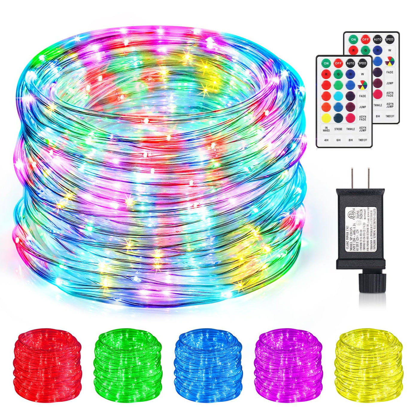 - Q: What are the key features of the SURLED Color Changing Rope Lights? A: The SURLED Color Changing Rope Lights feature 300 bright LEDs that can switch between 16 vivid colors and 8 dynamic lighting modes such as FADE, JUMP, and TWINKLE. They come with two remote controllers for easy operation and have an IP68 waterproof rating, making them suitable for both indoor and outdoor use.