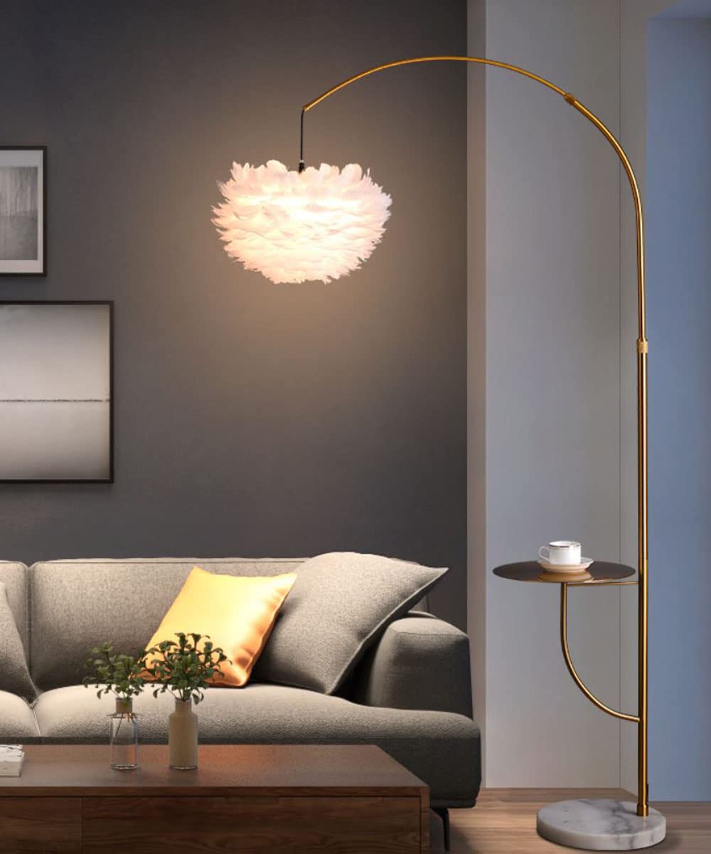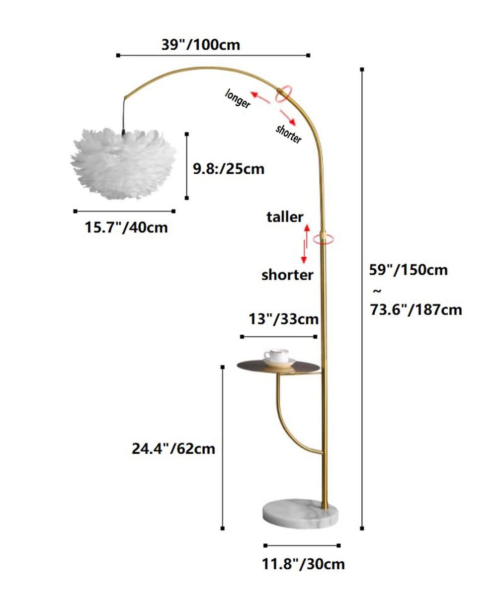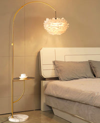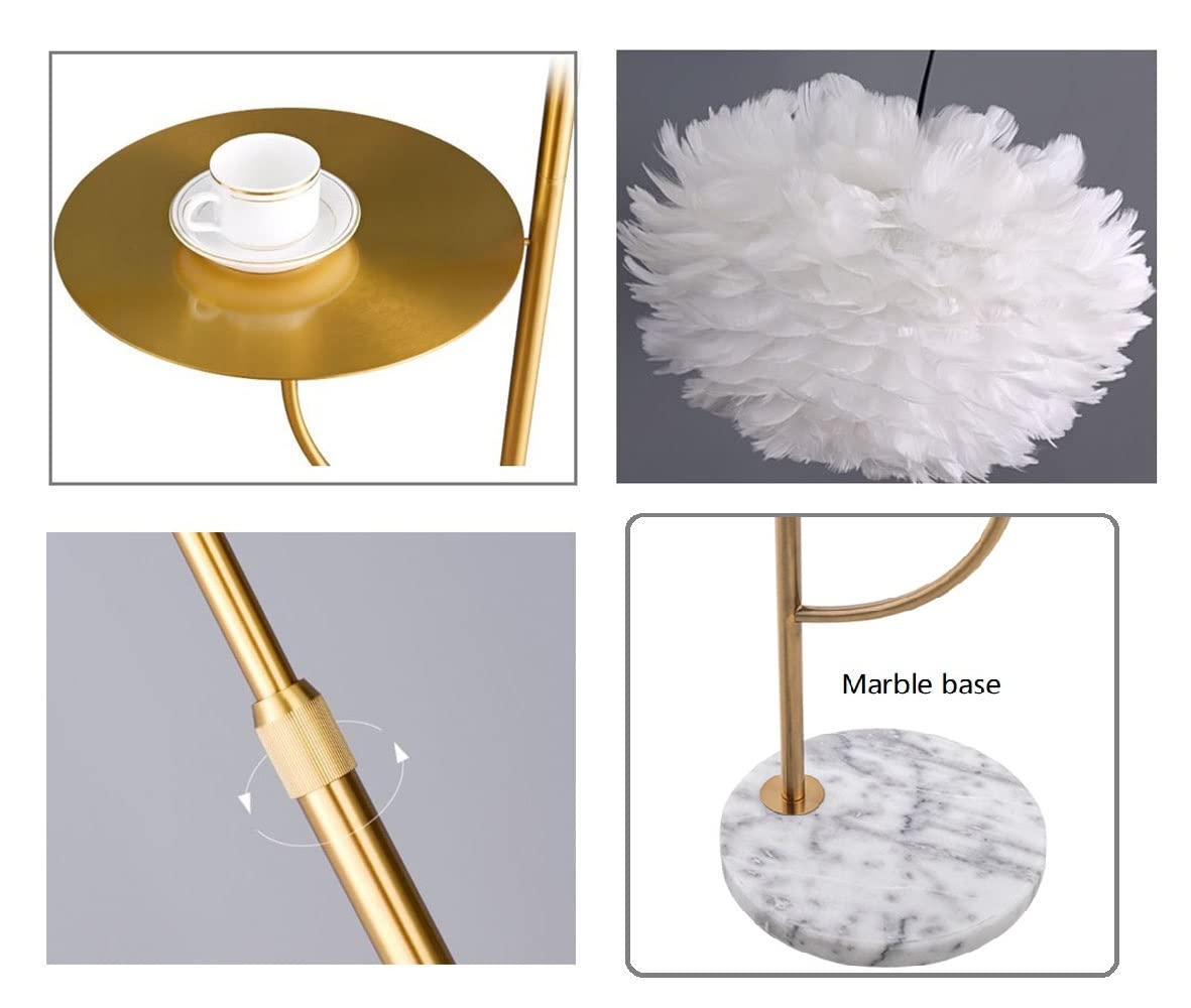 Surpars House White Feather Floor Lamp With Table,Great Floor Light Height Adjustable (Gold)