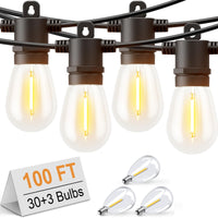 Waterproof And Etl Certified: With A High Ip65 Waterproof Rating, These Weatherproof Outdoor Patio Hanging Light Can Withstand Rain, Sun, Wind, Snow, Humidity, And Extreme Temperatures. Etl-Listed And Designed With Heavy Duty Cable And Layers Of Insulation | Classic Bistro Ambience: This Outdoor Hanging String Light Glows Warm Light To Light Up Your Patio And Backyard, Creating A Cozy Ambiance For A Happy Time With Your Family And Friends. Easy To Hang Or Mount Anywhere In Different Ways | Dimmable And Long Life: These 100 Ft Cafe String Lights Are Compatible With Most Dimmers (Not Included) To Create The Right Ambiance For You. Each Shatterproof Bulb Works Individually, If One Light Bulb Goes Out, It Will Not Affect The Rest Bulbs | Higher Quality And Energy Saving: 100 Ft Patio String Light Is 30 Shatterproof 1 W E12 Base Bulbs + 3 Spare Bulbs. To Cut Down Electric Bills With Svater Commercial Grade Outdoor Led String Lights By 90% Compared To Incandescent Bulbs | Wide Application: Perfect For Outdoor Patio, Cafe, Bistro, Backyard, Yard, Porch, Gazebo, Balcony, Outside, Garden, Party, Wedding Decoration. Connect Up To 16 Strands Of 100Ft String Lights. Please Contact Us If You Have Any Problem
