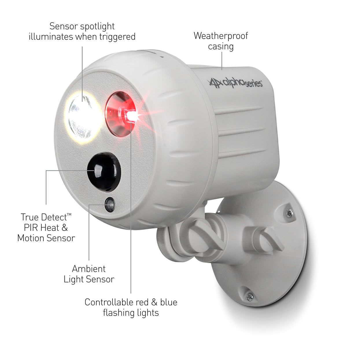 Swann Alpha Series Wireless Motion Activated Outdoor Floodlight with Red & Blue Flashing Security Lights, 400 Lumens, Wide Angle, Waterproof and Remote Controlled Multiple Light Modes,White