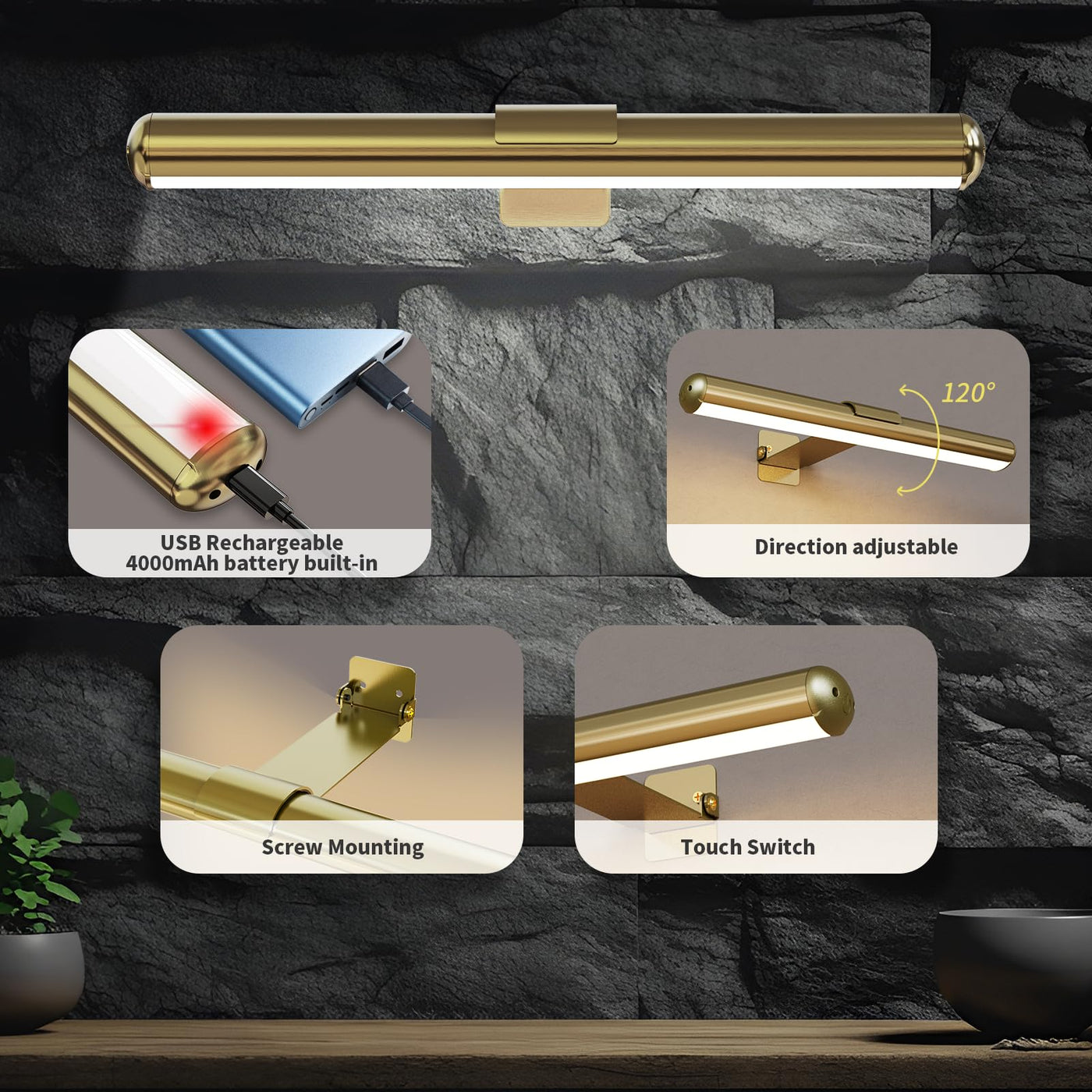 Wireless Picture Light, Which Can Recharge The Battery Painting Light, Used To Display Artworks, Display 300 Lumens, Adjust The Brightness Led Art Metal Dart Board-Bronze