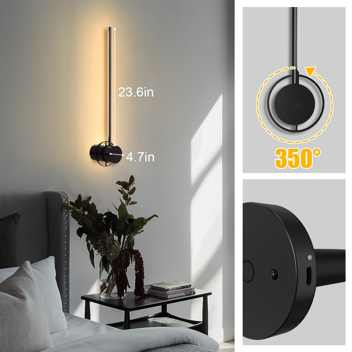 Wall Sconces Set of Two with Remote, Stepless Colors 3000K-6500K & Stepless Dimming, Hardwire or Plug-in, 350? Rotate, LED Black Plug in Wall Sconces with Timer & Night Light, 23.6 Inches