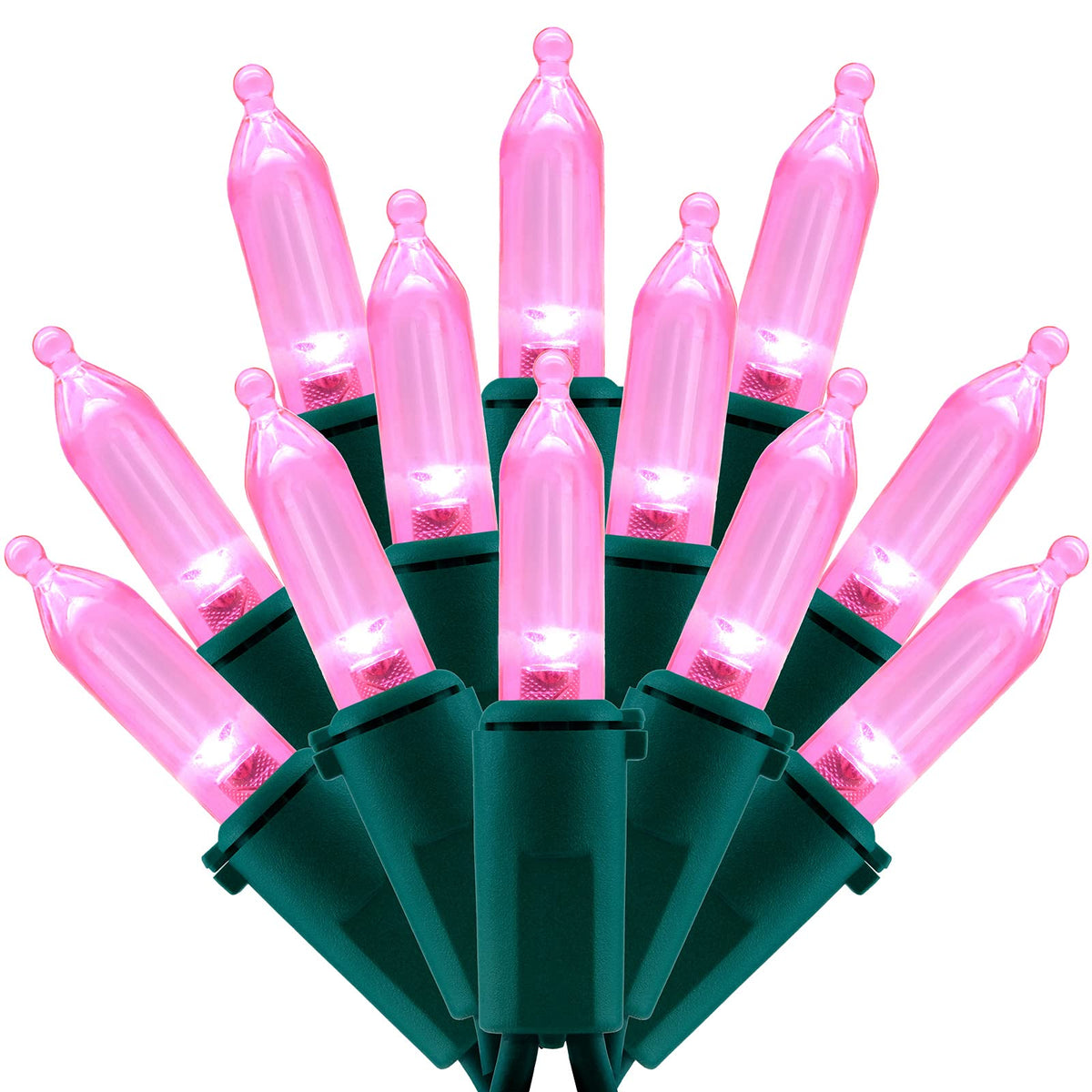Sweet Shine 200 Count Pink Led Christmas Lights, 66 Ft Green Wire, Ul Certified String Lights