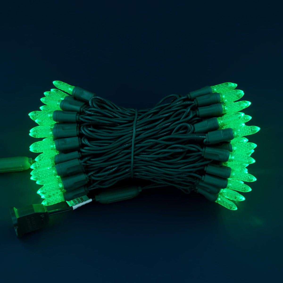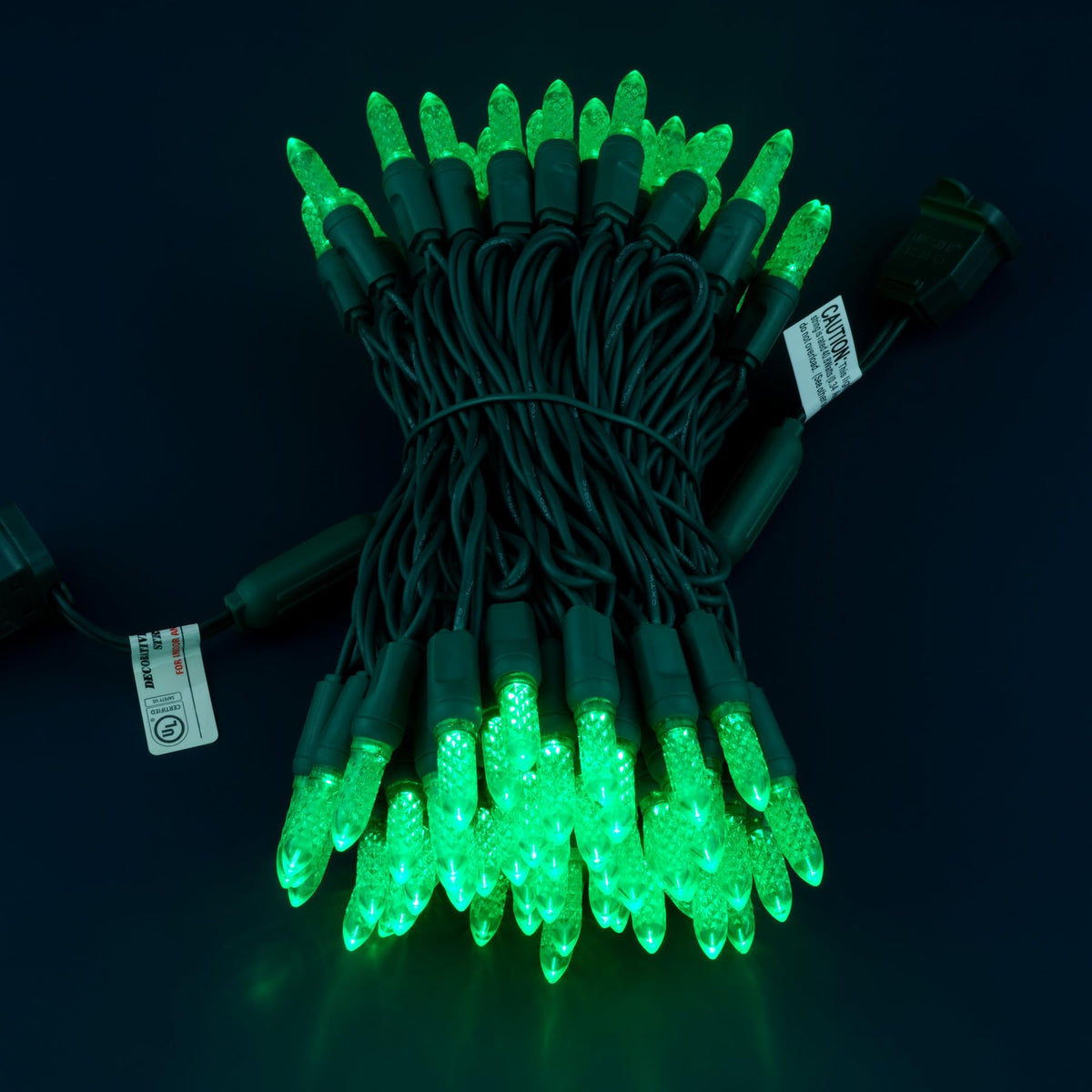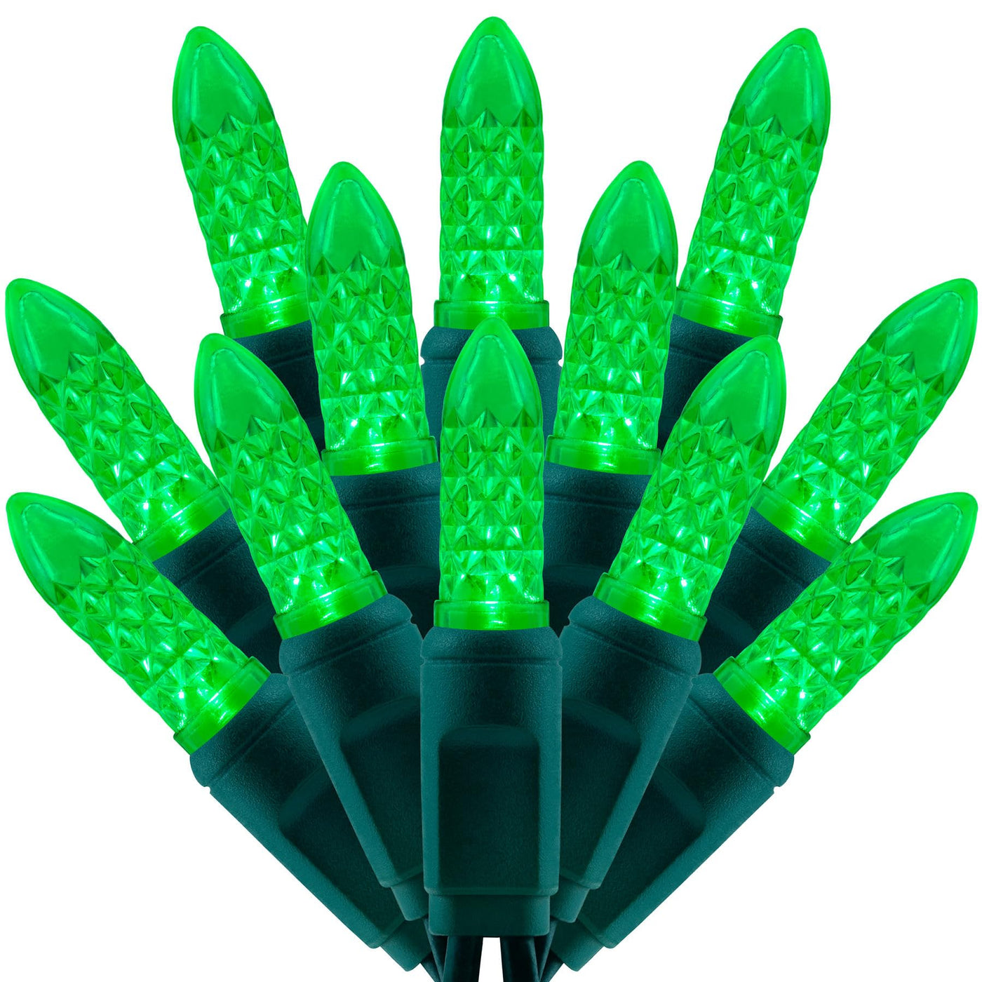 SWEET SHINE LED Christmas Lights, 33 ft Waterproof M6 Outdoor String Lights, Green Faceted, Green Cord, Model YX-M6-100-3