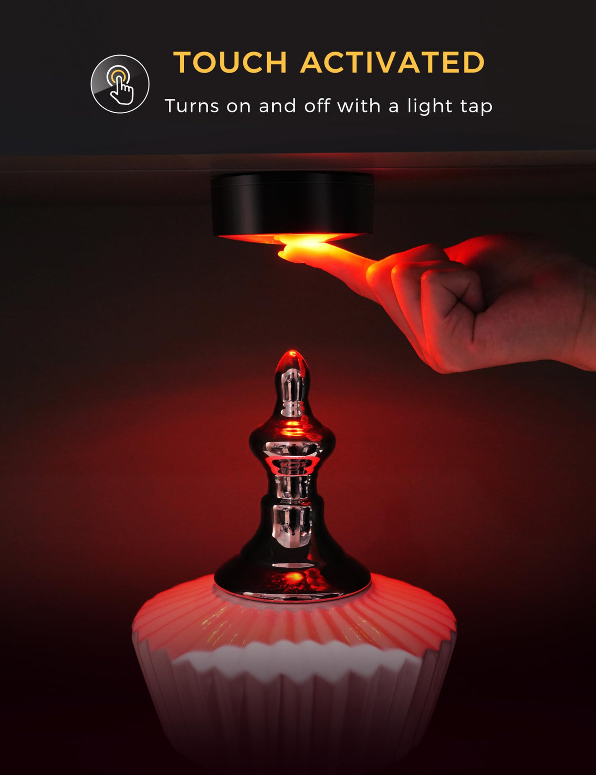 Q: What sizes are the Swesara Stick on Lights?A: Each puck light has a size of 3.35 inches in width and length, making them compact and perfect for small spaces such as bookshelves or above cabinets.