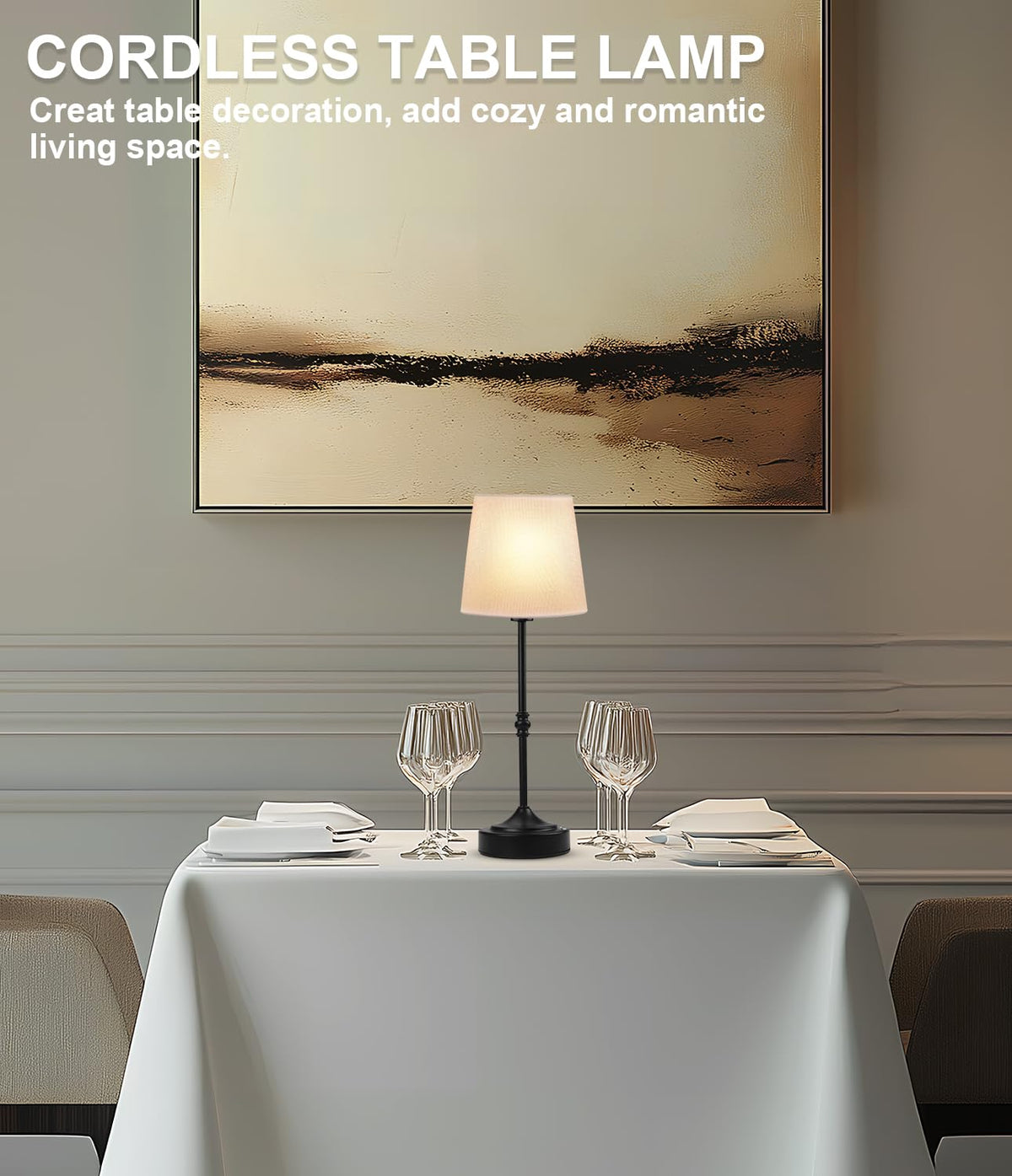 Q: What materials is the Swinerton Cordless Lamp made of?A: This lamp features a fabric linen lampshade, an antique brass finish, and a sturdy metal base, which not only provide durability but also enhance its vintage aesthetic, making it an elegant addition to any decor.