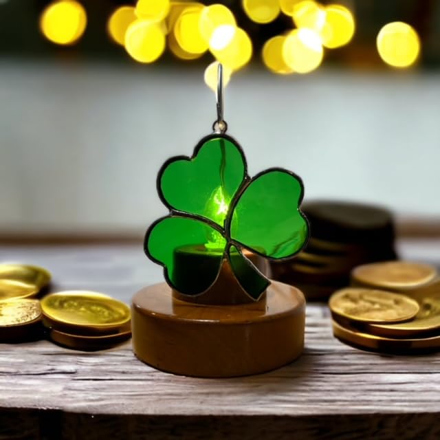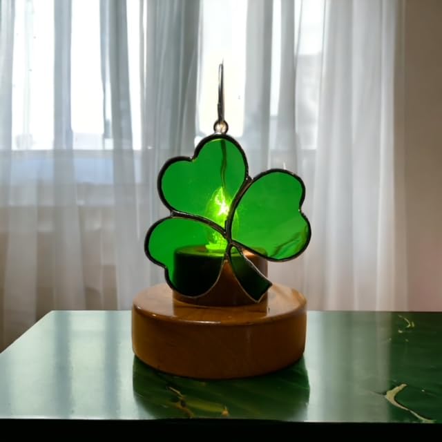 This Shamrock design hangs beautifully on our patented rotating nightlight plug, lighting up any room of your house. With over 250 stained glass designs, you can swap another in when your style changes. Switch your style, not your plug. NO TWO look alike. Stained Glass Colors will Vary from piece to piece. Glass is made in large sheets, then each piece is cut, hand ground, hand foiled, and hand soldered to give you a one of a kind design. Please note that color shades will differ in each piece. Thank you. --> Please note all of our Switchables covers measure between 3.25 and 3.5 in tall to be used with our patented nightlight plug. PLUG SOLD SEPERATELY