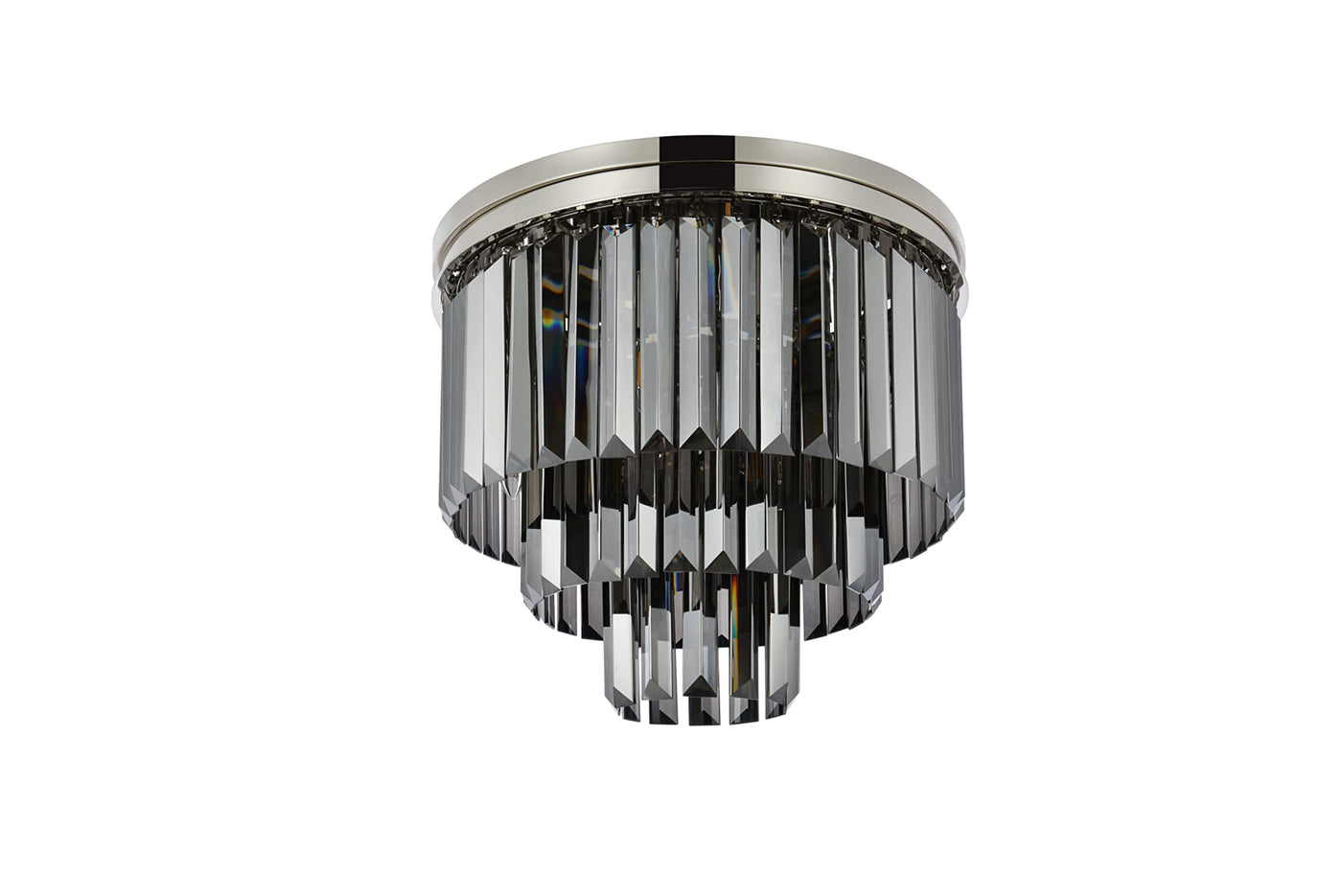 Timeless splendor and modern refinement are brought together in flushmount Sydney fixtures. Dazzling in dining rooms staircases or hallways the Sydney collection flaunts stunning tiers of royalcut crystals in clear golden teak or Silver shade. A circular mochabrown or polishednickel finished steel frame adds understated charm to this stunning flushmount lamp.
