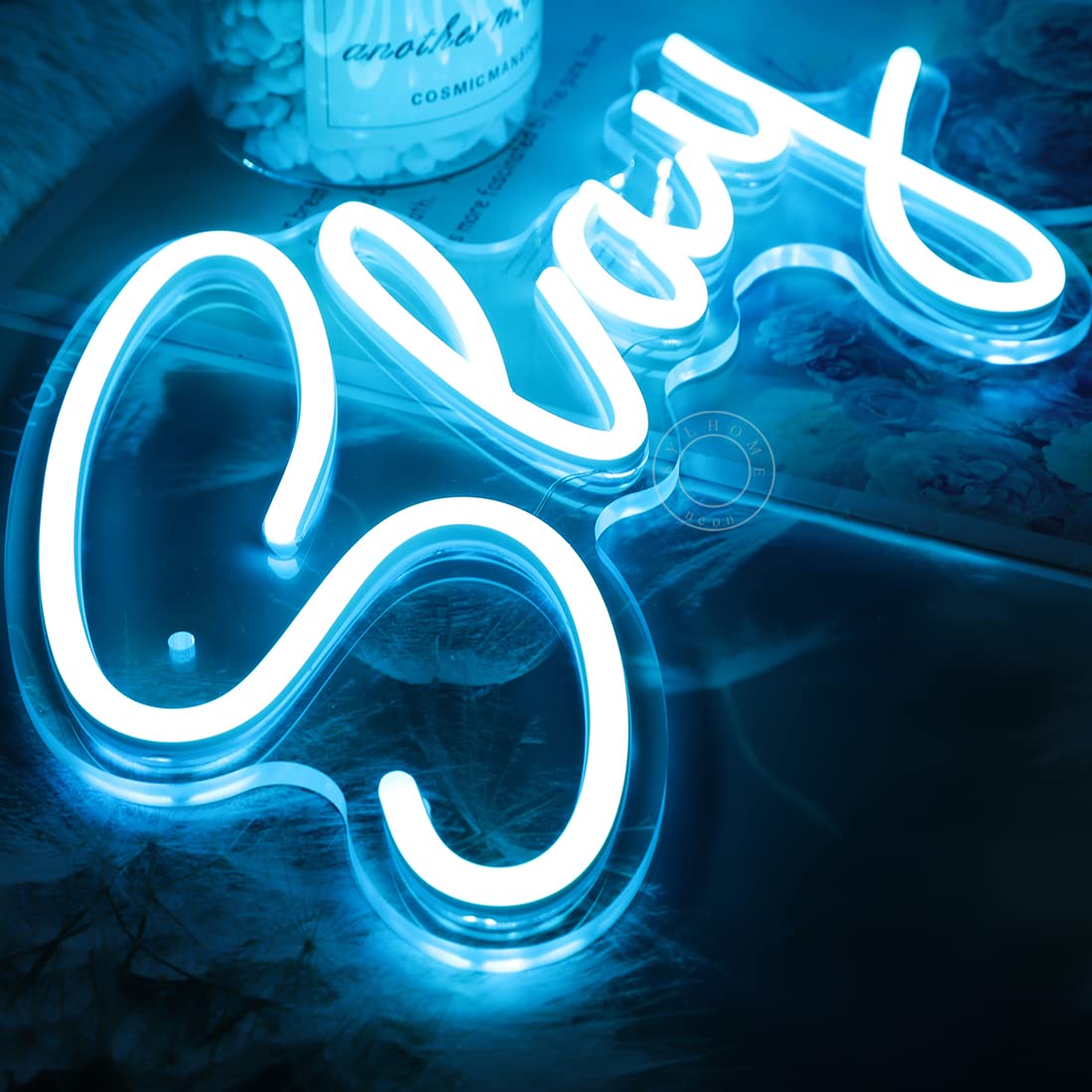 Sylhome Blue Led Neon Light Sign For Boys & Girls - Cool Bedroom Decor, Usb Night Light 11.8" X 8