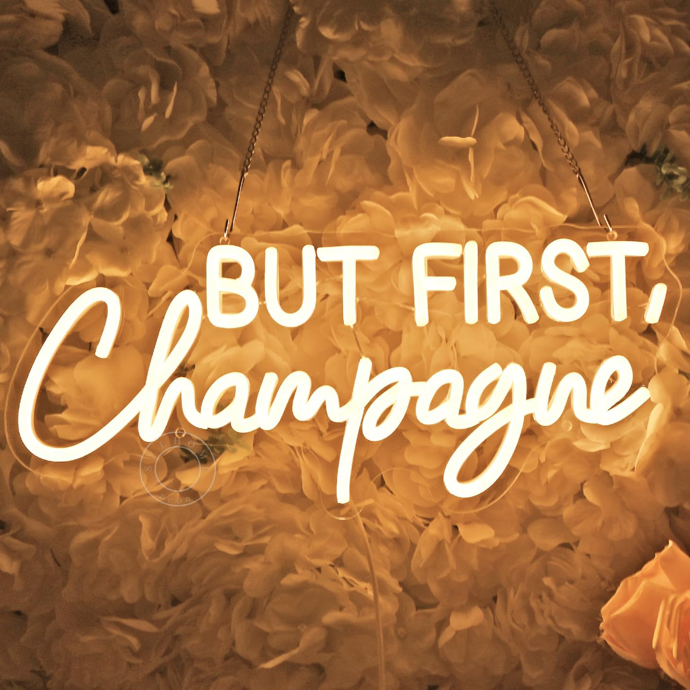 Sylhome But First Champagne Led Neon Light Sign Home Bar Kitchen Man Cave Pub Wall Sign Decor Wedding Birthday Grad Party Backdrop Drinks Christmas Gifts 16.54"X7.1" Usb Warm