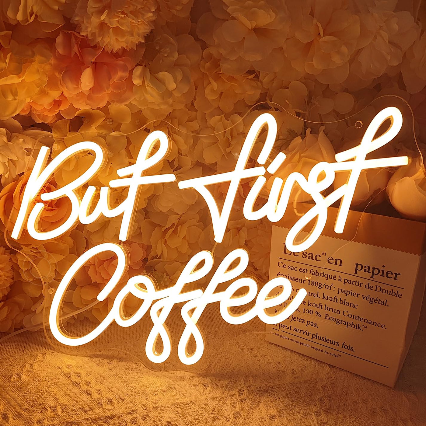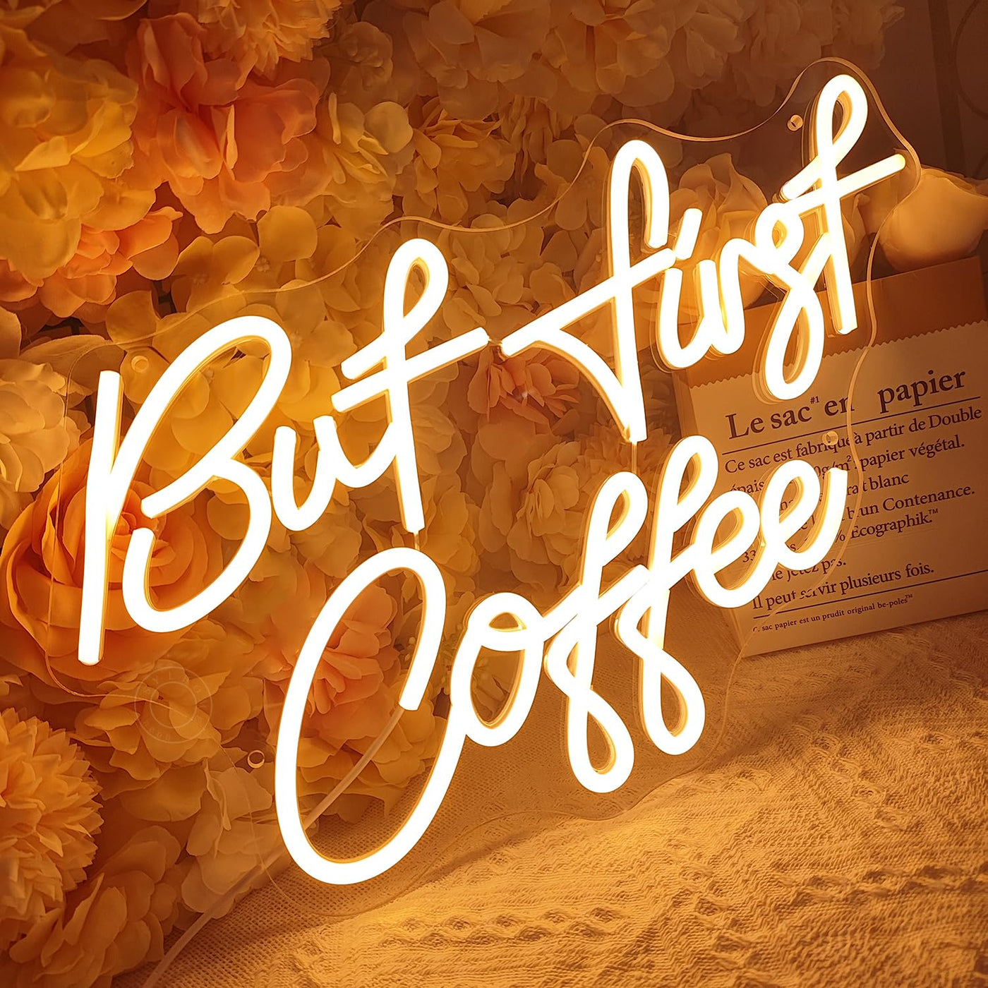 - **Unique Design**: Featuring the playful phrase "But First Coffee," this neon sign adds a fun and lively touch to your decor, inspiring and uplifting your mood.