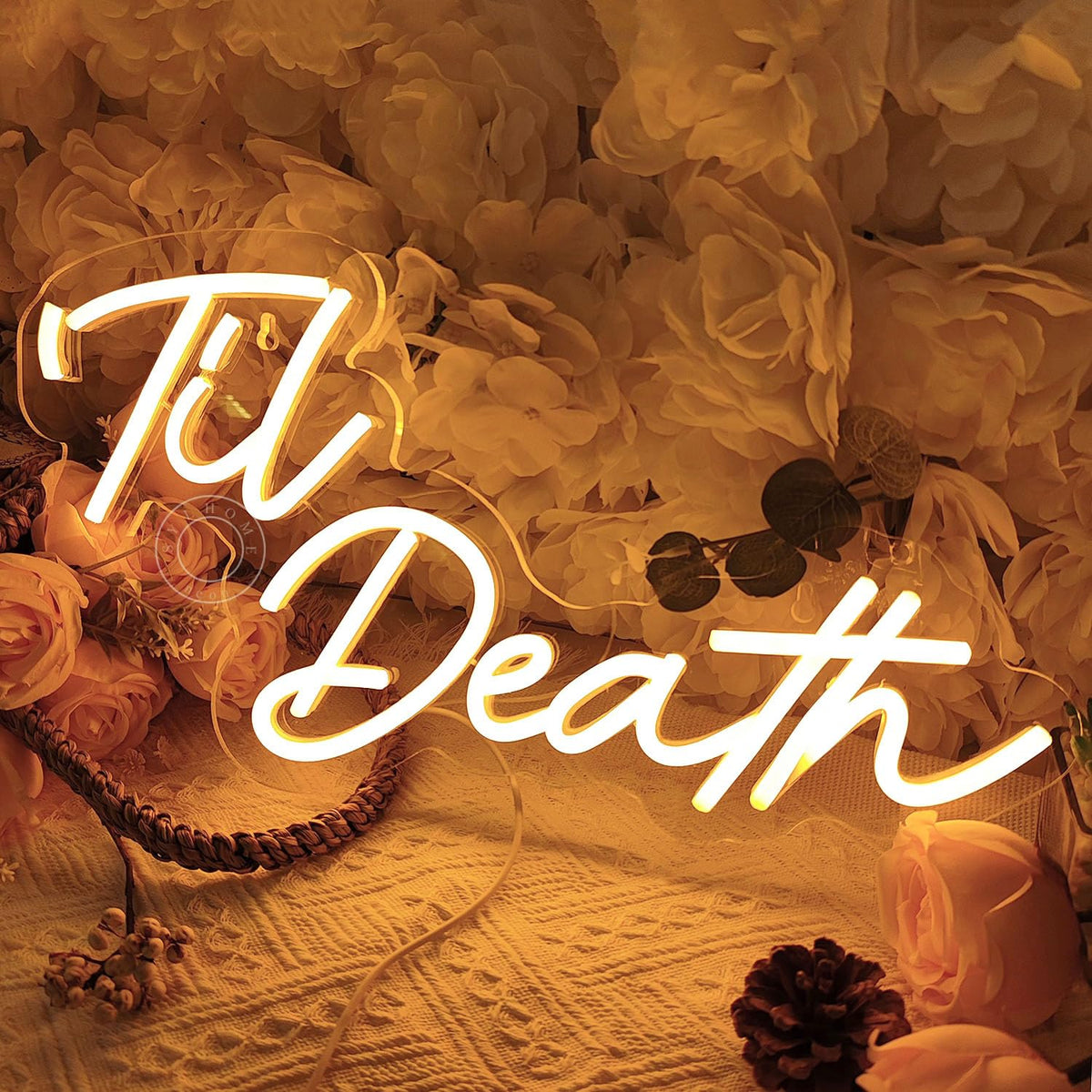 Bring your décor to life and uplift your mood with the 'Til Death LED Neon Light Sign. Create a fun, inviting atmosphere that your family and friends will love, making every moment a celebration. Perfect as a gift for any occasion or as a delightful treat for your own home, this neon sign is sure to become a beloved centerpiece.