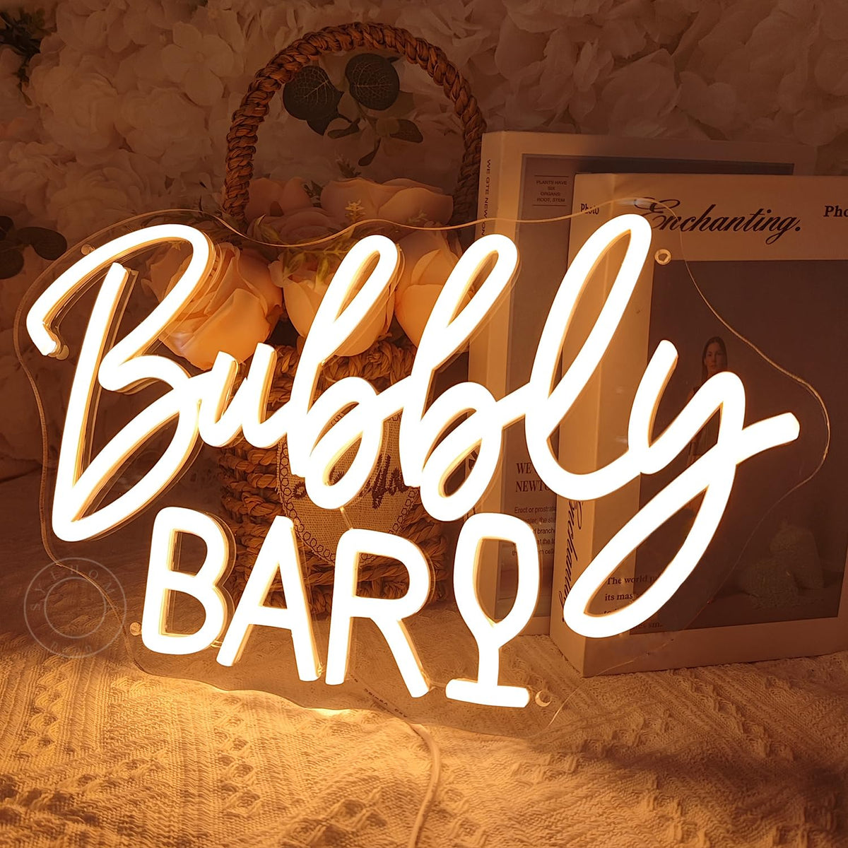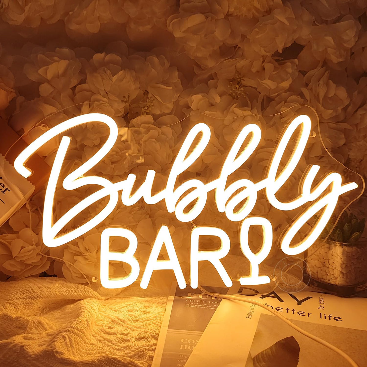 Illuminate your environment with the enchanting SYLHOME LED neon light sign, designed to add a splash of vibrant warmth to any room. Perfect for children's bedrooms, living rooms, game rooms, or as a stunning decoration for special occasions such as weddings, parties, and holidays. This bubbly neon bar sign is not only an eye-catching piece of decor but also a thoughtful gift for loved ones.