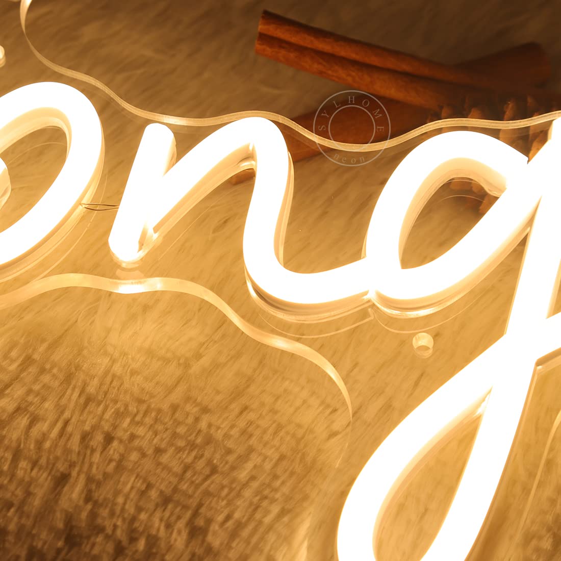 Elevate your decor with this stunning LED neon light sign, perfect for any celebration or personal space. The SYLHOME Warm White Congrats Neon Sign brings warmth and joy to your bedroom, living room, or event, making it an ideal addition for various occasions. From birthdays to weddings, this neon sign is designed to create a vibrant and inviting atmosphere. Key Features: