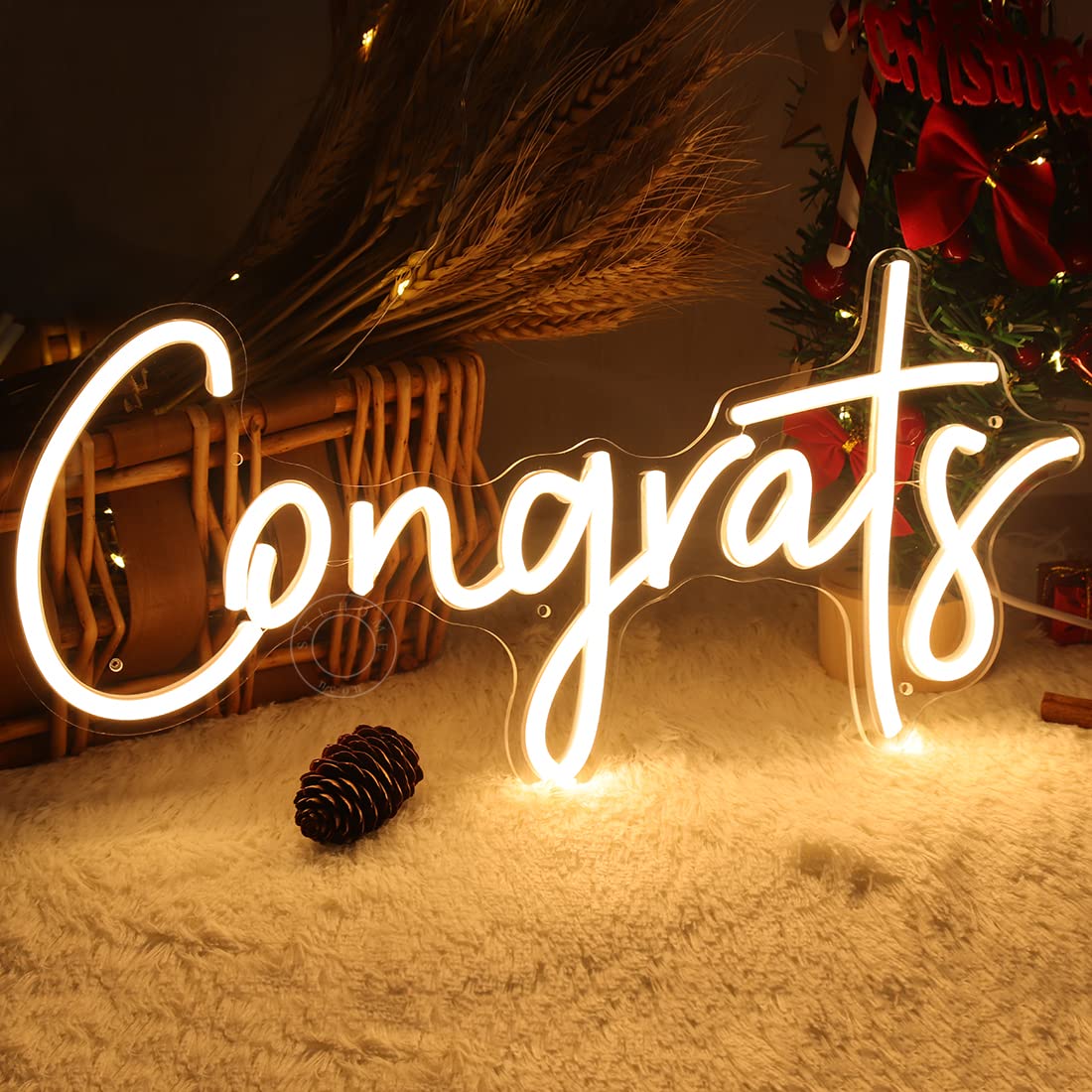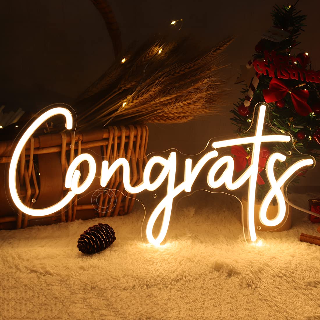 Sylhome Warm White Congrats Led Neon Light Sign For Weddings, Birthdays, And Graduations 15.8" X 7.