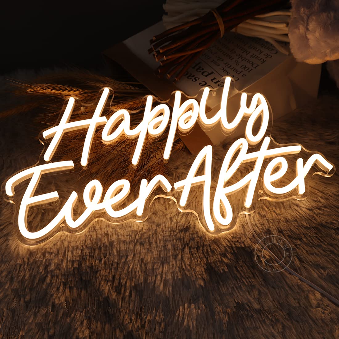 Sylhome Warm White Happily Ever After Led Neon Sign For Weddings, Parties & Home Decor 15.8"X9.2"