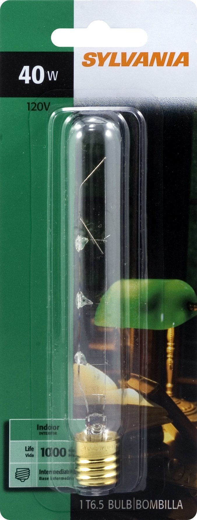 The Sylvania 18152 40-Watt Clear Tubular Incandescent T6 Bulb is a 365-lumen, 2850-Kelvin colored light source designed for general purpose lighting. This 2-pack of T6 bulbs provides bright, energy efficient illumination from the incandescent technology. With a 40 watt power consumption and 1000 hour rated lifespan, these bulbs offer long-lasting performance. The 6.5 inch tall, tubular shape fits many lighting fixtures. Simply turn the push button knob to adjust the brightness. The 365 lumen output creates bright, energy efficient lighting.