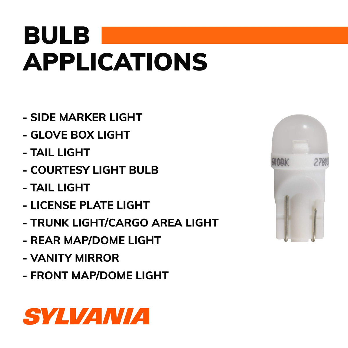 SYLVANIA - 194 T10 W5W LED White Mini Bulb - Bright LED Bulb, Ideal for Interior Lighting - Map, Dome, Cargo and License Plate (