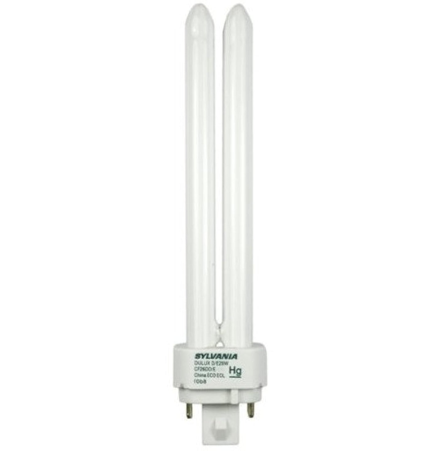 Q: What is the wattage and brightness of the Sylvania CF26DD/E/841/ECO light bulb?A: The Sylvania CF26DD/E/841/ECO is a 26-watt double tube compact fluorescent light bulb that produces 1710 lumens of brightness.