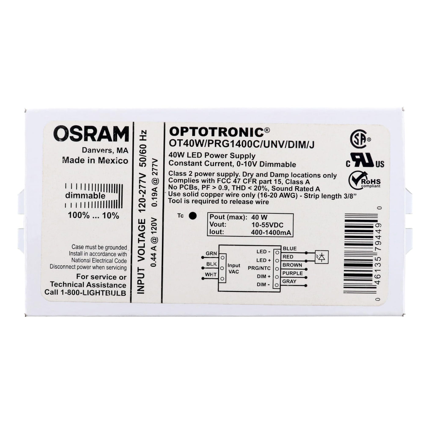 The Osram OT40W/PRG1400C/UNV/DIM/J is a well-made dimmable LED driver designed for efficient lighting control. It is suitable for both residential and commercial applications, providing reliable power and dimming capabilities for LED lighting systems.