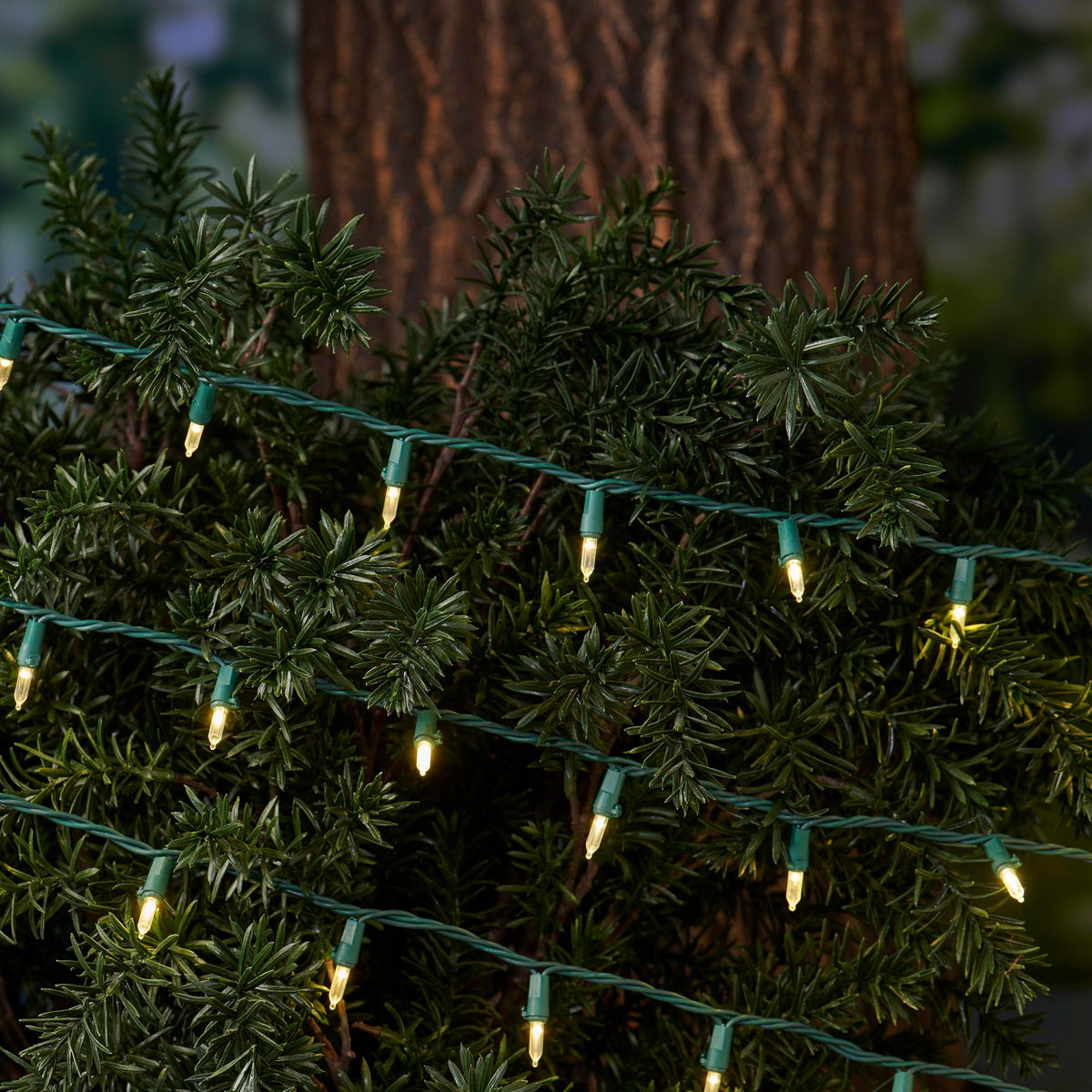 This LED light set features warm white LEDs that mimic the classic glass look, offering a traditional aesthetic that complements any holiday theme. With a generous 24-inch lead and 3.25-inch spacing between bulbs, these lights are perfect for decorating Christmas trees, mantels, wreaths, garlands, banisters, hedges, fences, and more. The green wire blends seamlessly into your holiday decor, allowing the bright lights to take center stage.