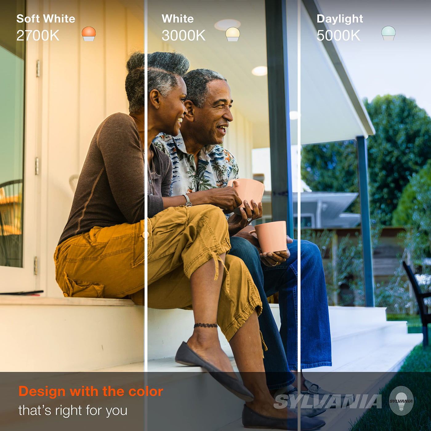 Q: What are the different color temperatures available for the Sylvania LED PAR38 bulb?A: The Sylvania LED PAR38 bulb features a CCT Color Select option that allows you to easily switch between three color temperatures: soft white (2700K), warm white (3000K), and daylight (5000K). This versatility helps you create the perfect ambiance for any space.