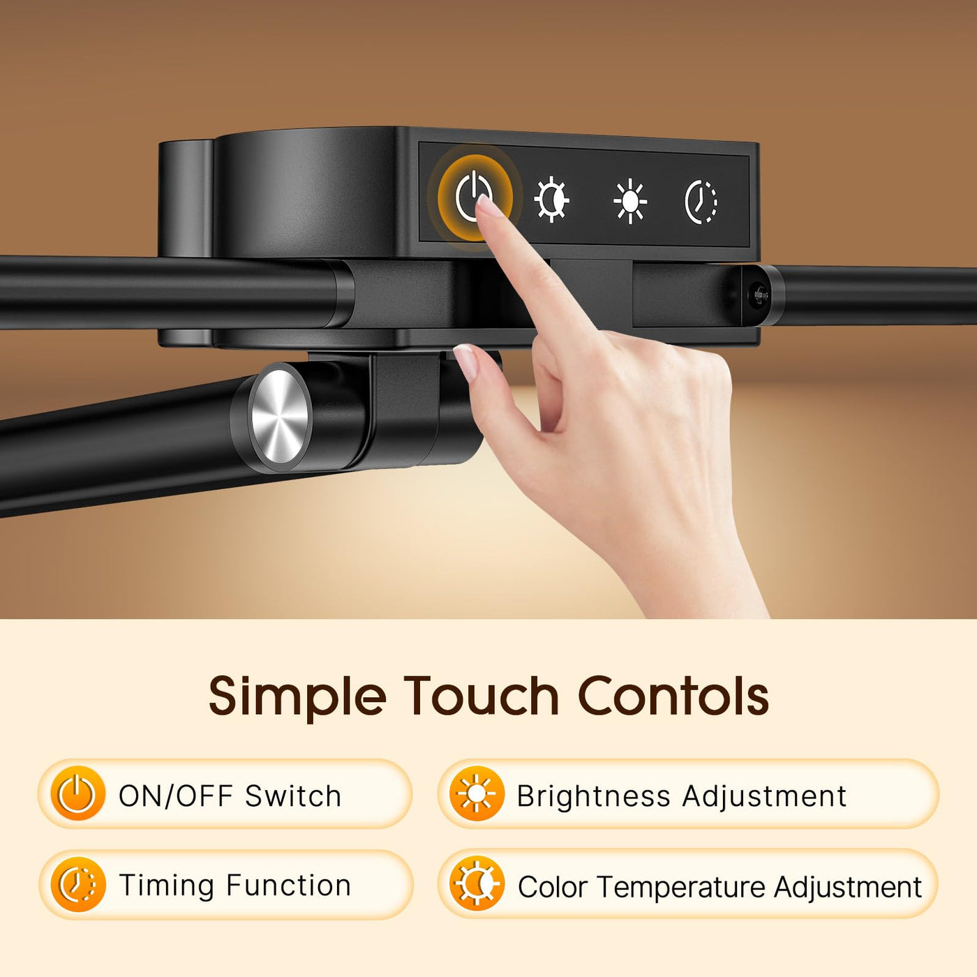Syrinx Desk Lamp With Base, Eye-Caring Desk Lamps For Home Office With Gesture Sensor Switch, Dual Screen Computer Monitor Led Desk Light, 24W 25 Lightings Bright Table Lamp With Usb Charging Port
