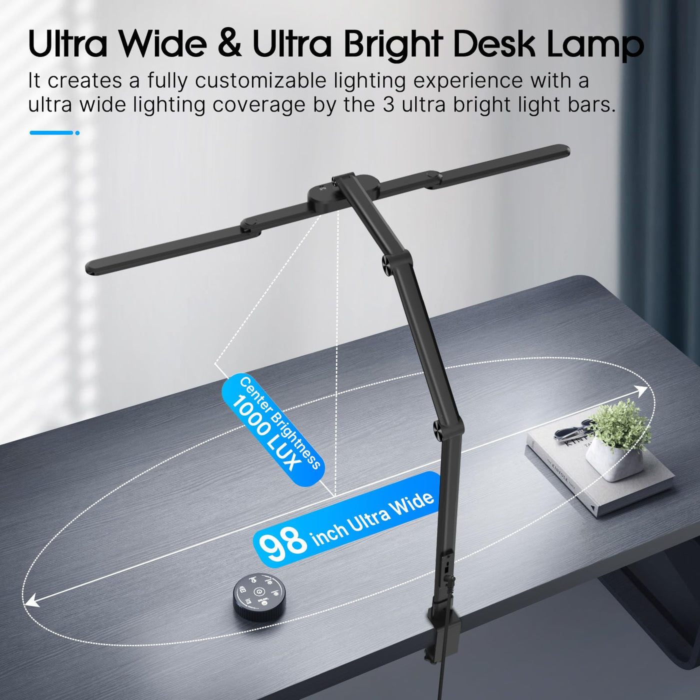 Syrinx LED Desk Lamp with Clamp, Architect Desk Lamp for Home Office with Gesture Sensor Switch and Remote Control, 24W Bright Desk Light with 50 Light Modes Adjustable Eye-Caring Desk Lamp