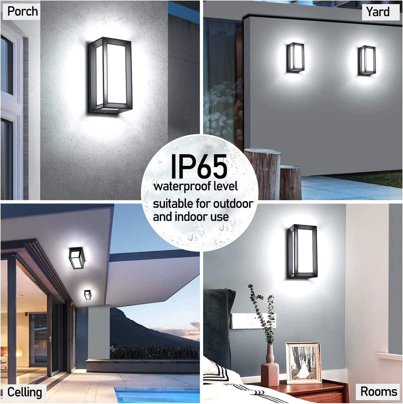 - **Multi-Scenario Suitability**: This fixture is perfect for a variety of settings, including outdoor patios, villa door pillars, balconies, corridors, living rooms, study rooms, and bedrooms. Its minimalist black design complements any décor, making it a versatile addition to your home.