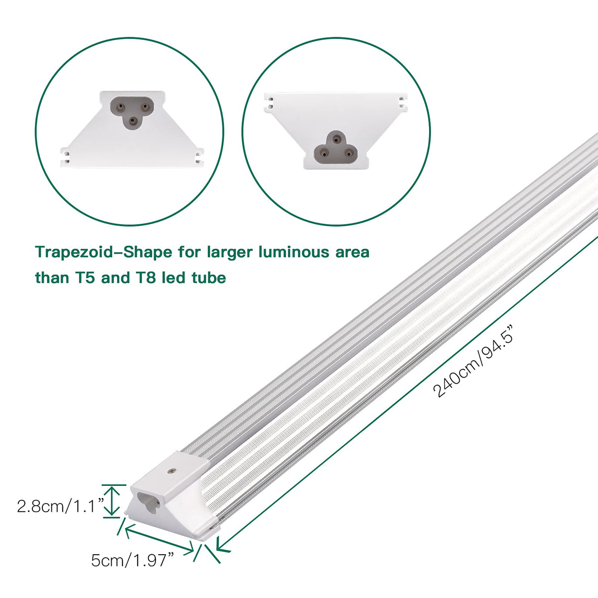 - **Scientific Design and Super Bright**: With an impressive output of 17,400 lumens and a minimum efficiency of 145lm/watt, this trapezoid-shaped light delivers a larger luminous area than traditional T5 and T8 LED plant lights, ensuring maximum visibility.