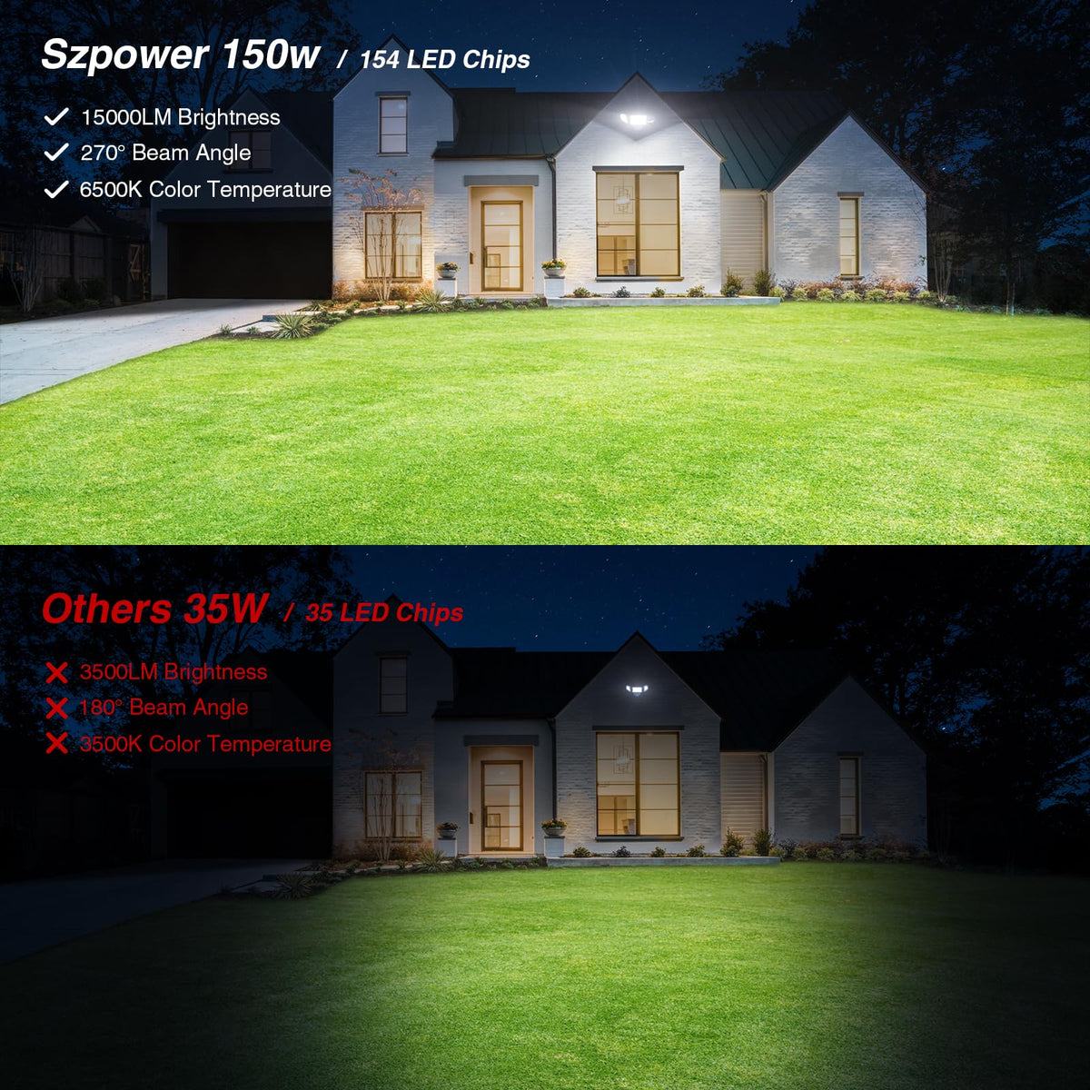 Szpower 150W Flood Lights Outdoor Waterproof Ip65, Exterior Led Floodlights With 3 Adjustable Heads, 15000Lm Super Bright Securi