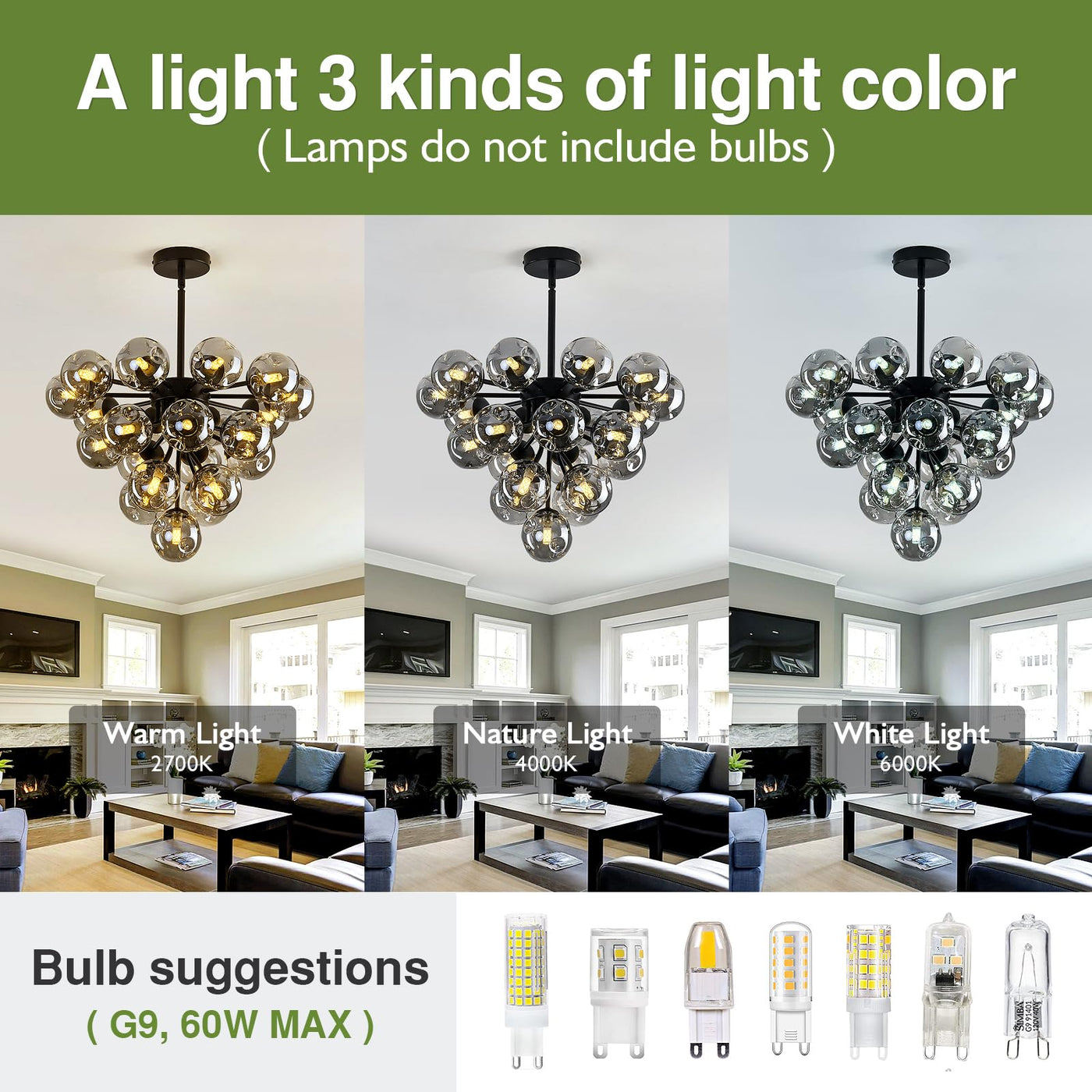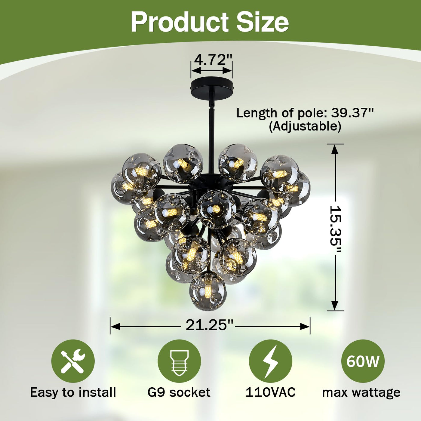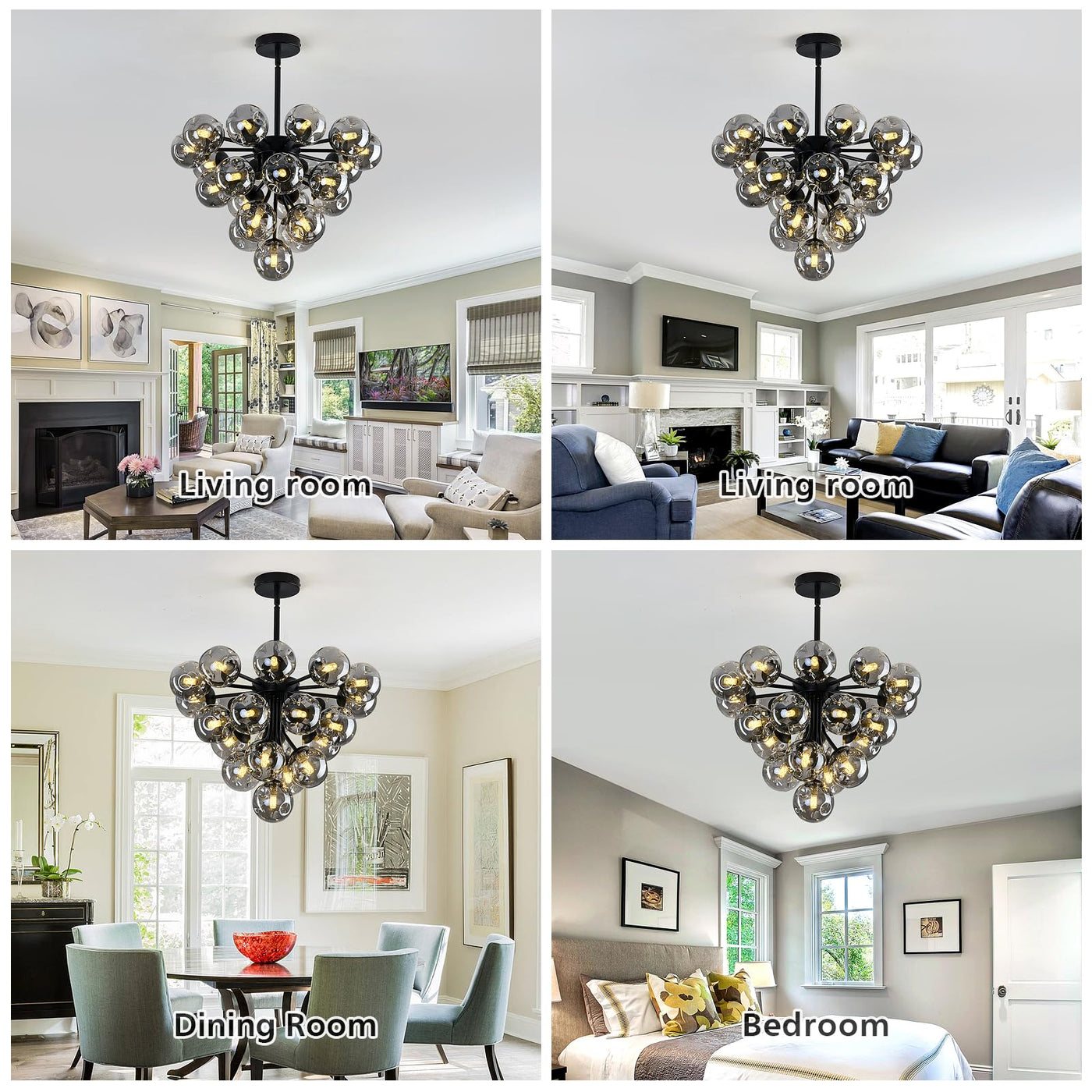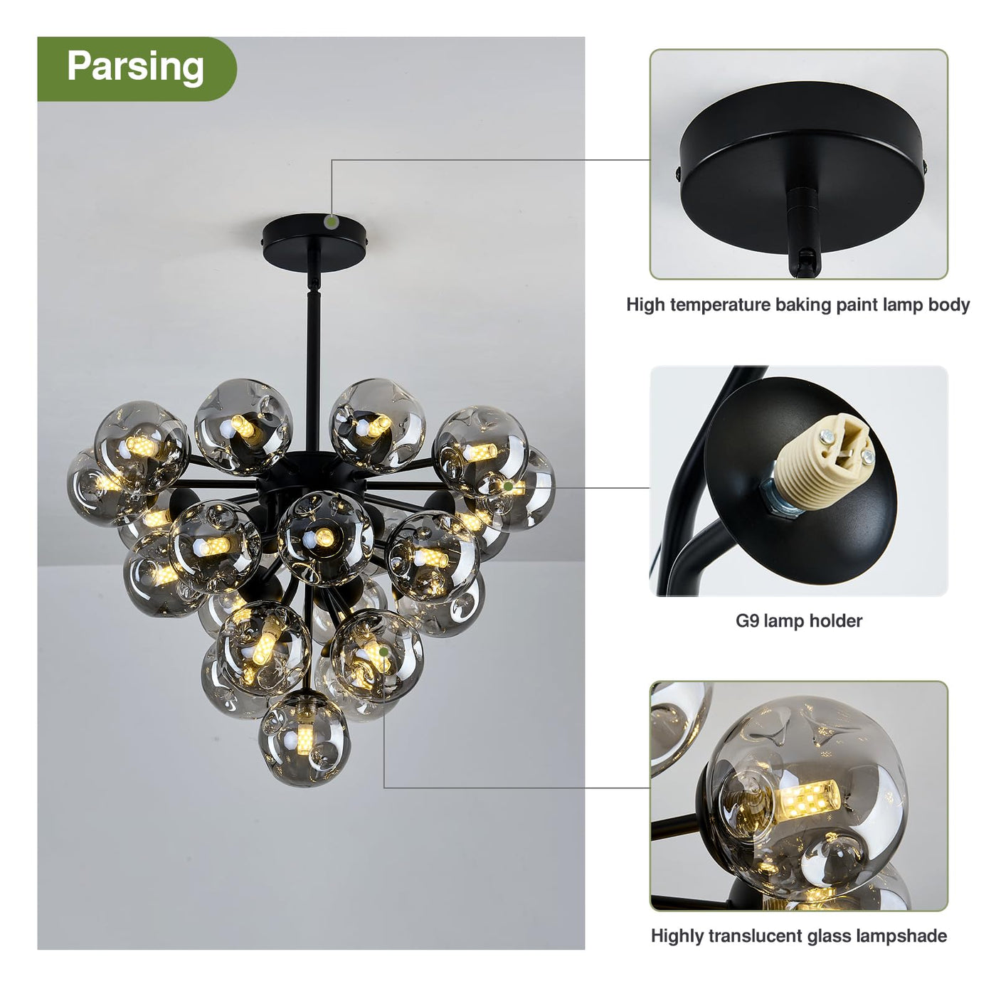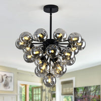 Szxykeji Black Modern Glass Globe Chandelier Mid Century 21-Light Pendant Lights Bubble Sputnik Ceiling Light Fixture For Dining